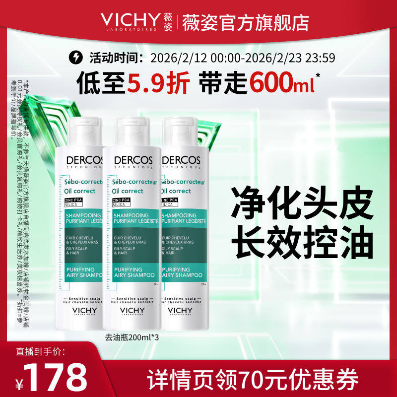 📚 【直播推荐】薇姿绿标去屑爆蓬红标去油瓶粉标洗发水O