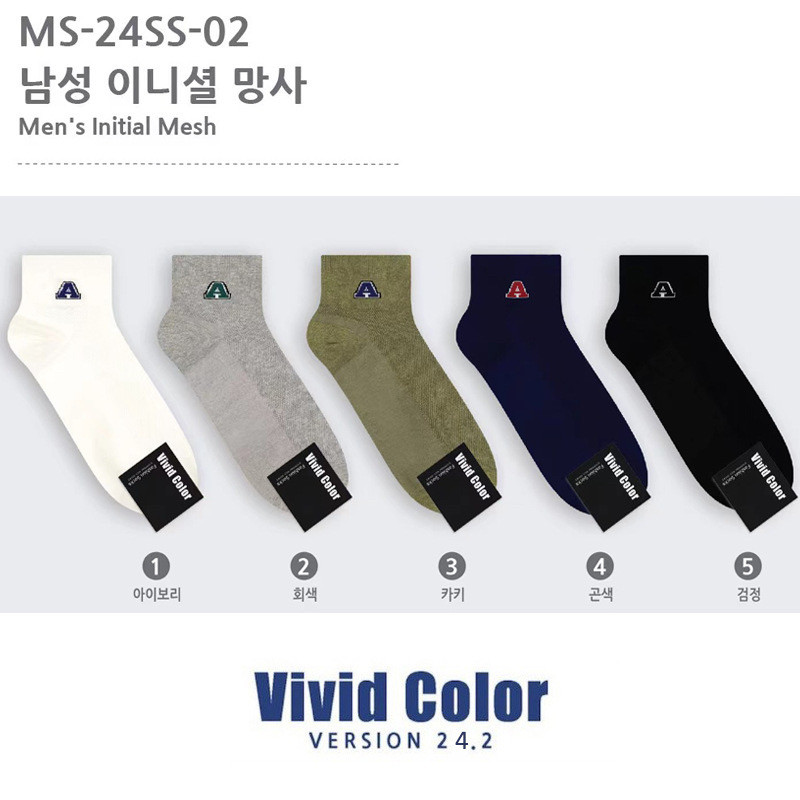 📚 韩国vivid男士袜子春夏新款镂空网面短袜字母A吸汗透气短棉袜5095