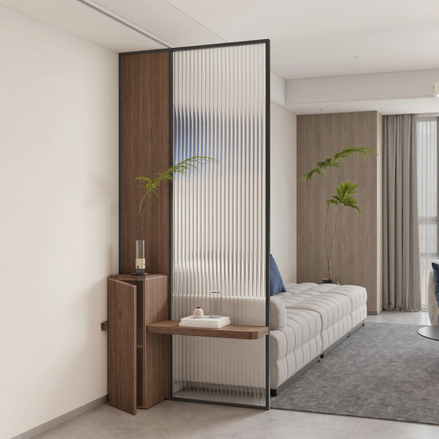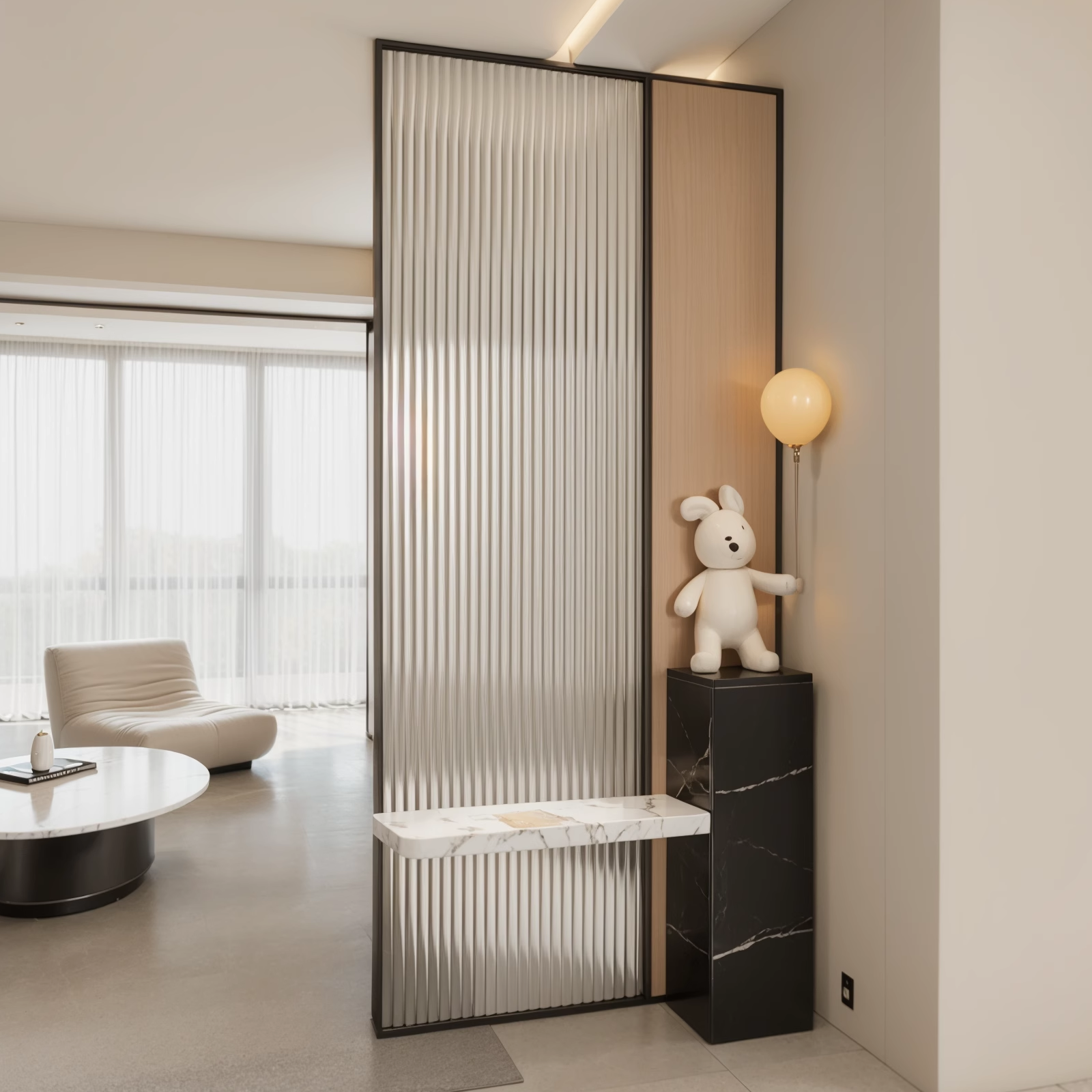 🎁首先,这款隔断柜的设计非常独特,融入了新中式风格,简约而不失优雅。它的长虹玻璃屏风设计,不仅美观大气,还能有效遮挡入户的透光问题。在光线充足的日子里,它就像一道隐形的屏障,为你的家增添了一抹神秘与优雅。