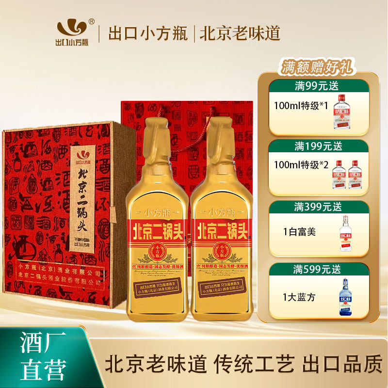 📚 出口小方瓶牌北京二锅头金方46度清香型白酒两瓶永丰牌官方旗舰店