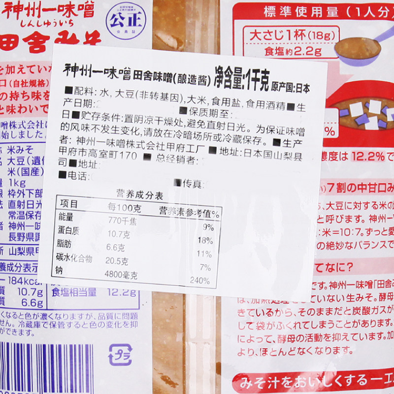 📚 日本原装进口味增/神州一田舍味噌酱(豆酱)1kg 味增汤料大酱 包邮