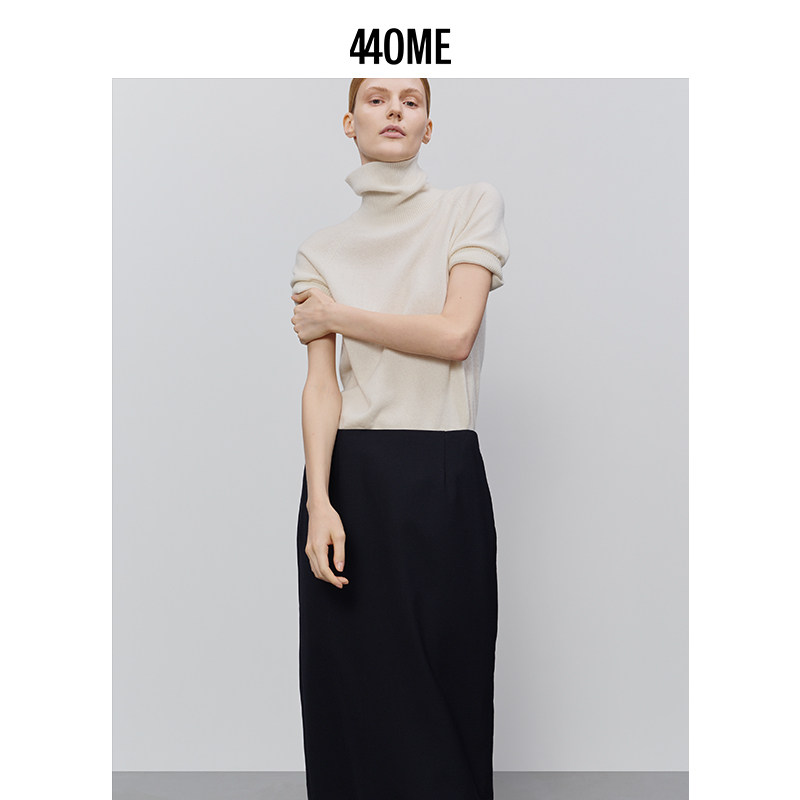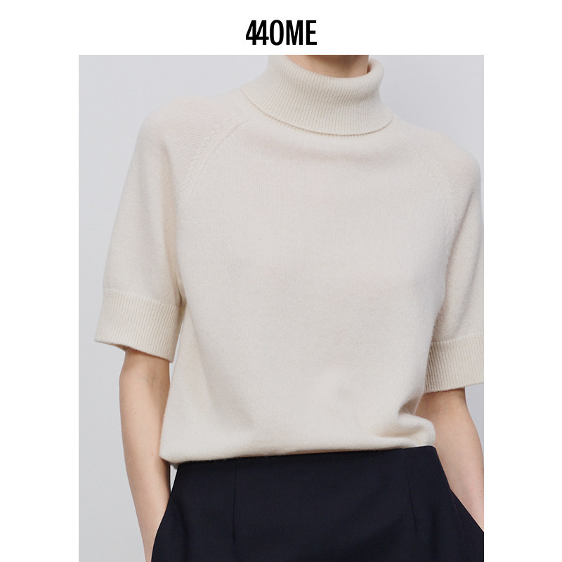 📚 440ME女装 优雅白智性风纯羊毛合身高领短袖针织毛衣FCFW0362K