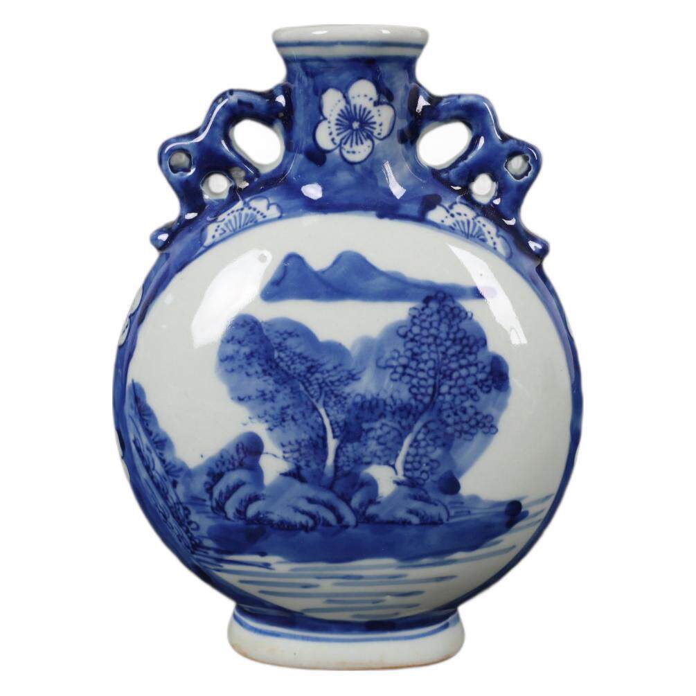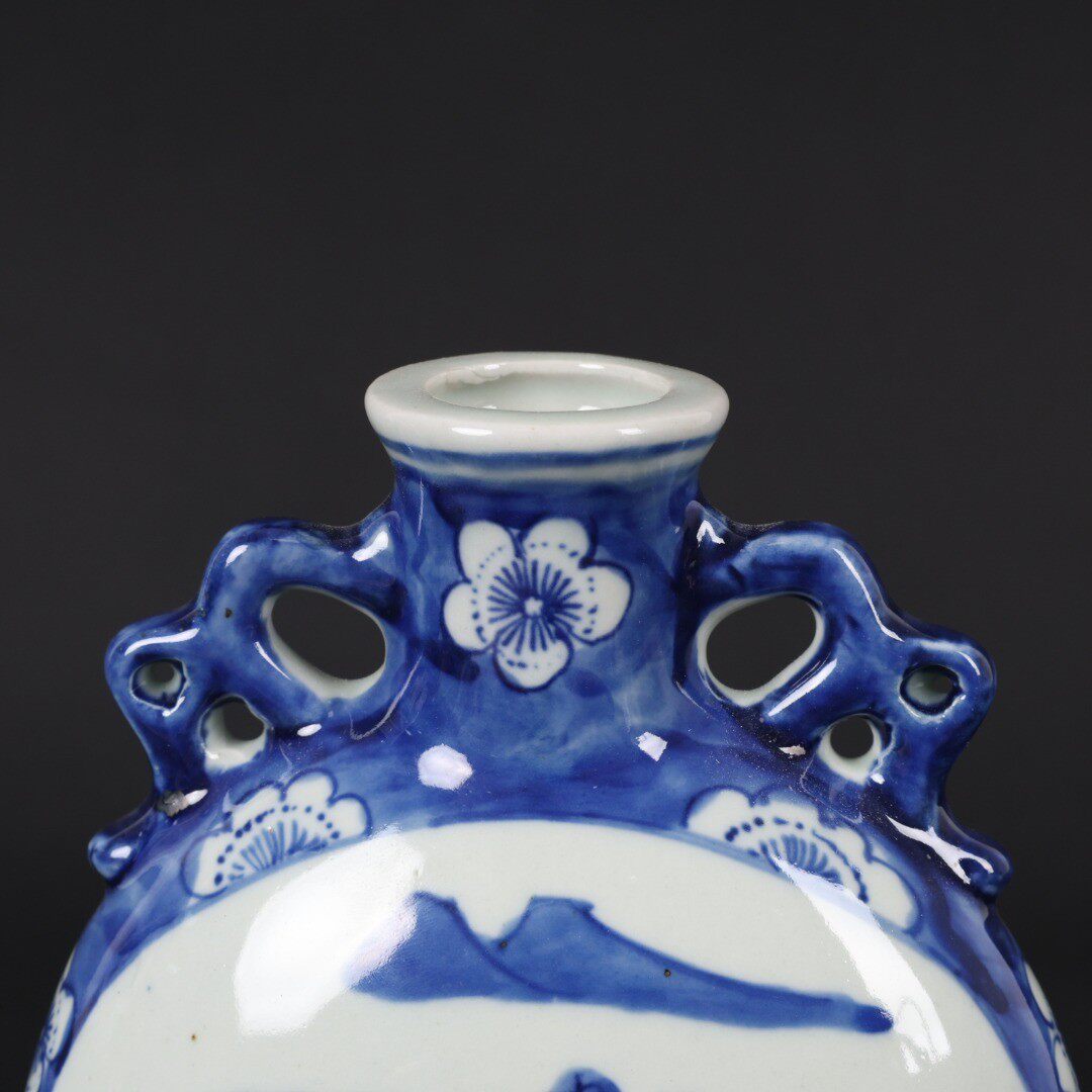 📚 热销仿制收花山水纹扁瓶古玩青藏青花山水纹扁瓶摆件装饰品工艺品