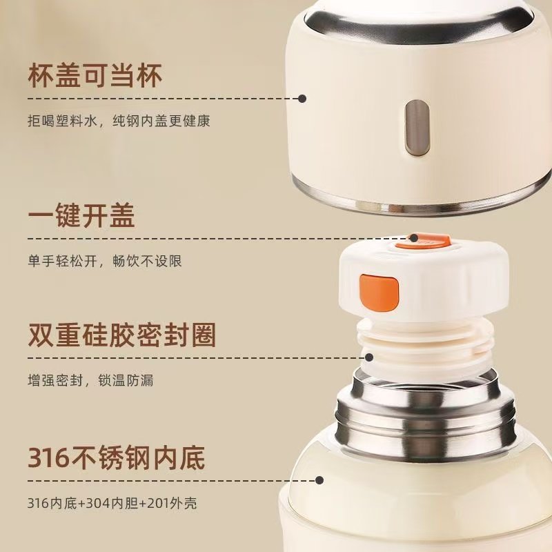 📚 保温杯大容量新款316不锈钢简约高颜值男女学生户外便携大号水壶