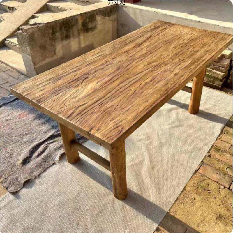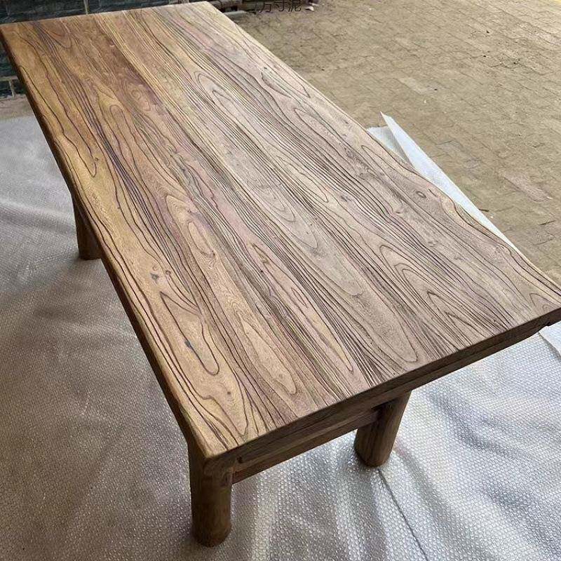 📚 榆老木桌子实木板复古茶桌茶台木长条MRL桌餐家用原桌面吧台长桌