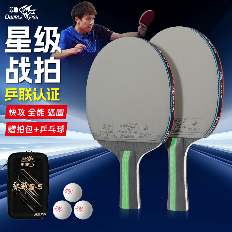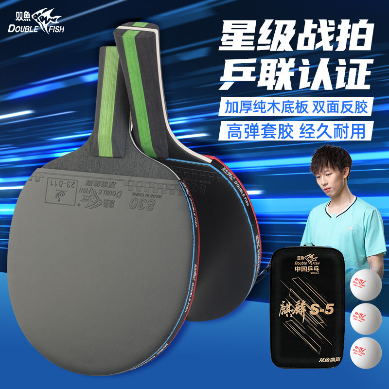 📚 双鱼乒乓球拍麒麟S5学生成人初学者进阶训练比赛用双面反胶成品拍