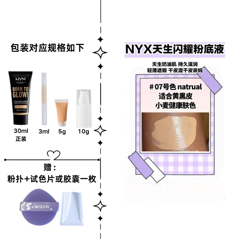 📚 NYX Born to glow奶油肌粉底液小样07黄黑皮调小麦色亚裔滋润干皮