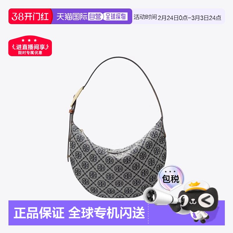 📚 香港直邮TORY BURCH汤丽柏琦 T MONOGRAM 女款小号新月包 海军蓝