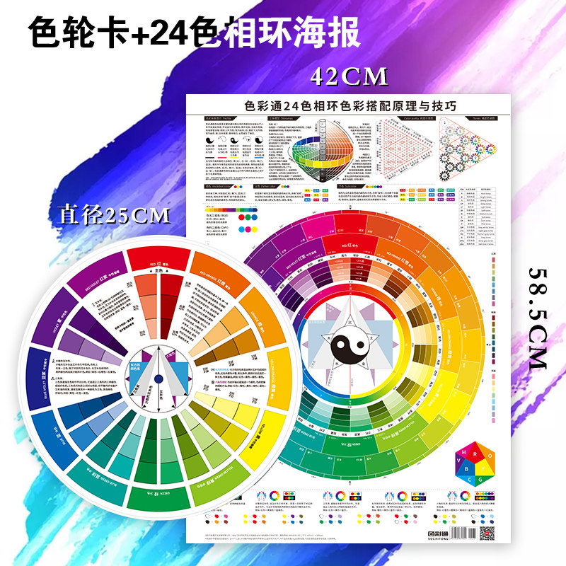 📚 12色轮卡24色相环海报颜色彩搭配调色卡配色卡转盘油漆调色比例卡三原色盘卡表调色原理色环图多功能色卡样本