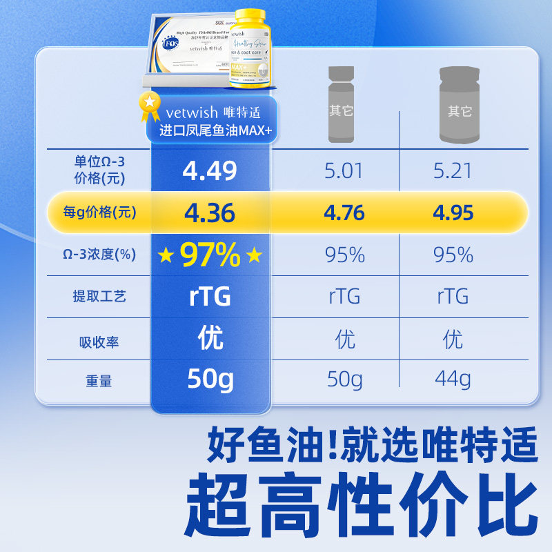 📚 vetwish唯特适宠物鱼油犬用卵磷脂美毛护肤犬用V97鱼油胶囊犬专用
