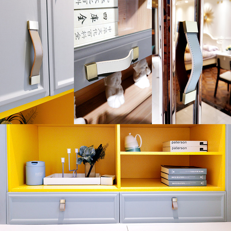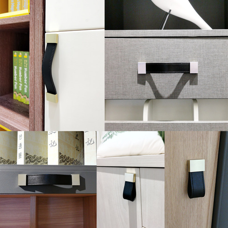 📚 高端高品质头层牛皮拉手床头柜衣柜门抽屉橱柜皮革家具皮质把手