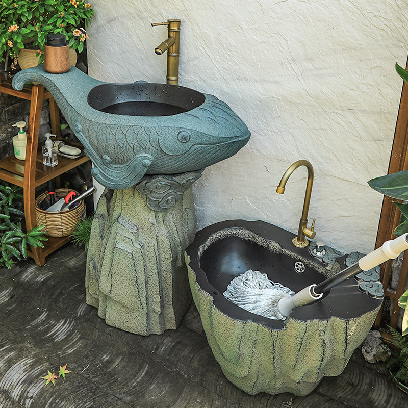 💥惊艳!陋石坊户外庭院洗手盆室外洗手拖把池花园立柱洗脸盆落地水槽台盆,券后价亲民,让你爱不释手💖
