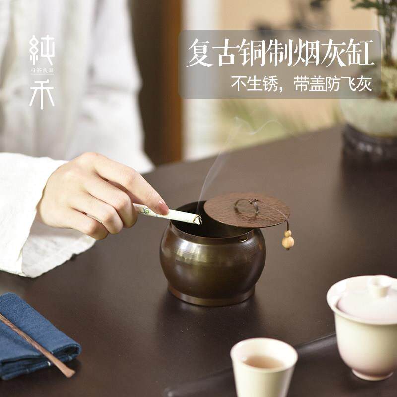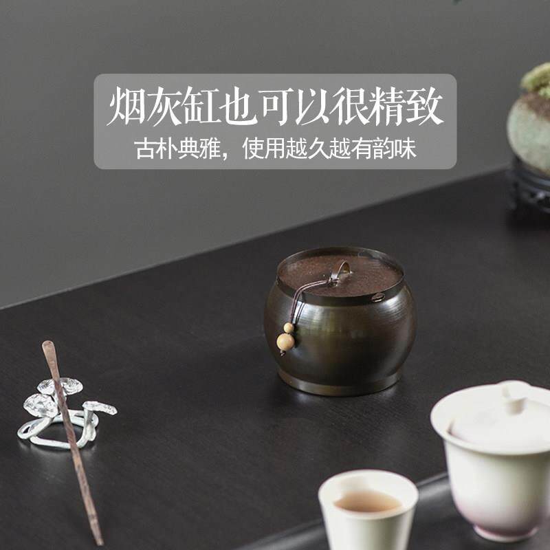 📚 中式黄铜烟灰缸带盖子覆古创意个性潮流家用客厅防飞灰办公室烟缸