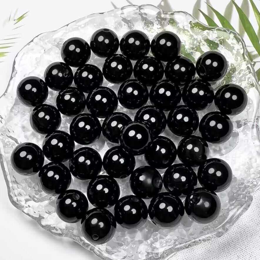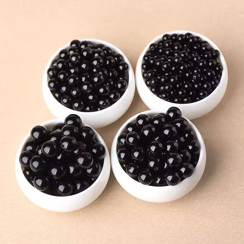 📚 水晶玻璃黑曜石珠子散珠批发黑色圆珠diy手串配珠光珠手链材料