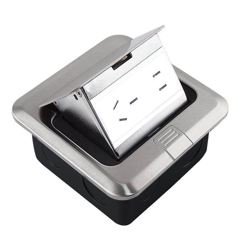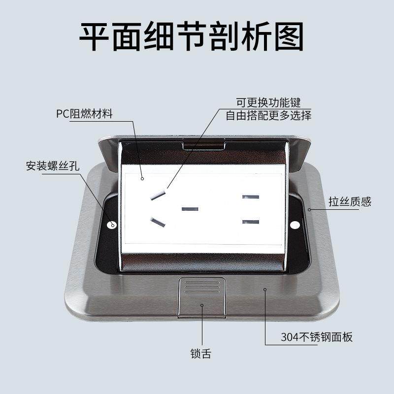 📚 华工不锈钢地插 五孔超薄10A银灰色地面插地板插 可配不锈钢底盒