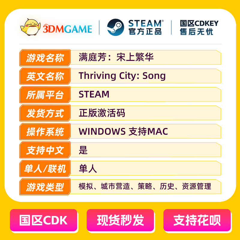 📚 Steam正版激活码 满庭芳宋上繁华 Thriving City: Song 国区CDKEY