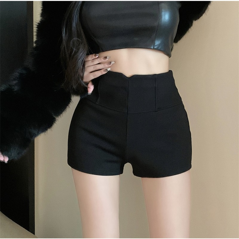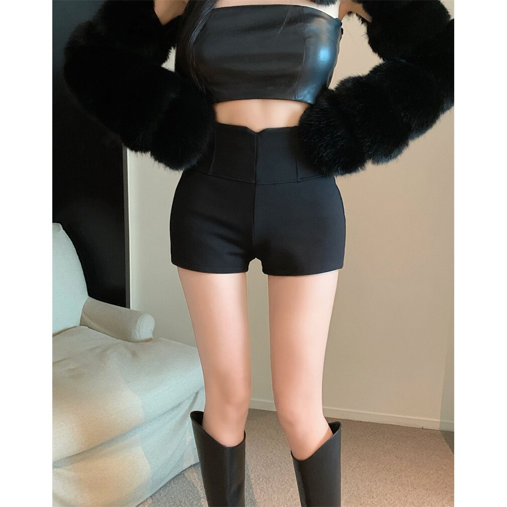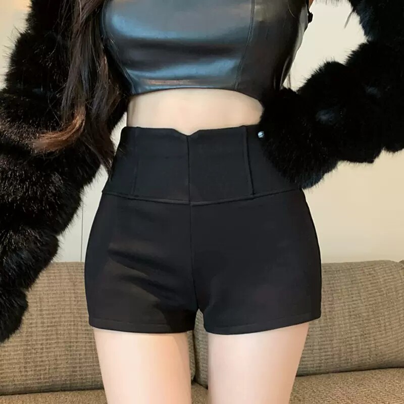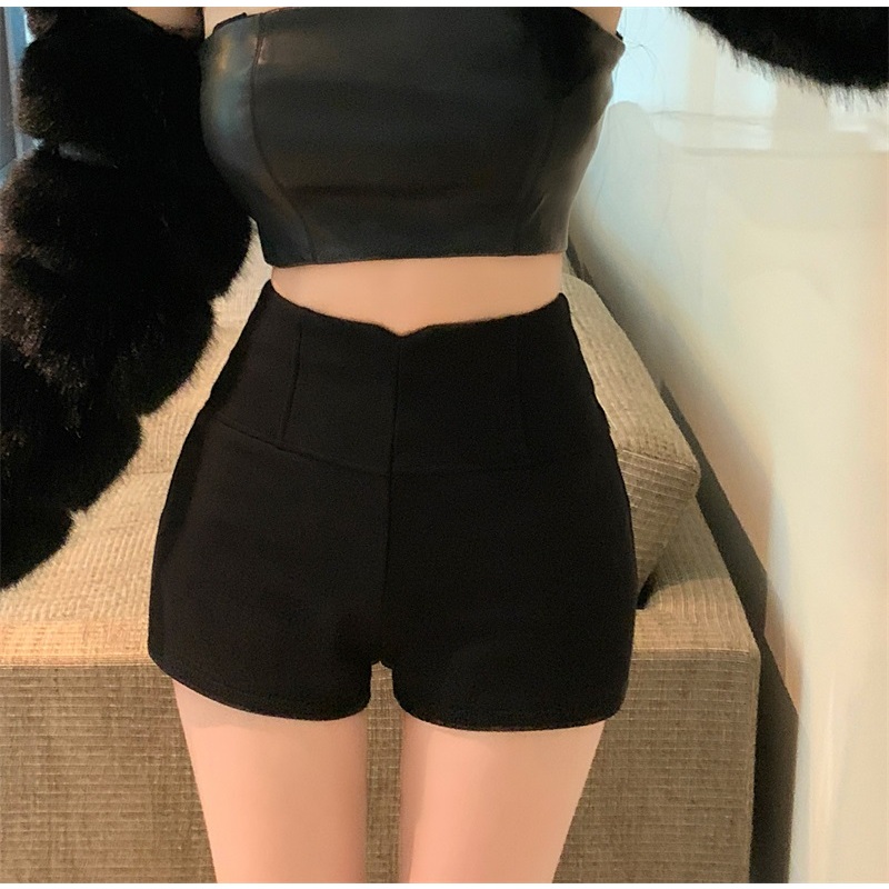 📚 配靴子的黑色加绒加厚短裤女春秋高腰紧身热裤子冬季外穿打底靴裤