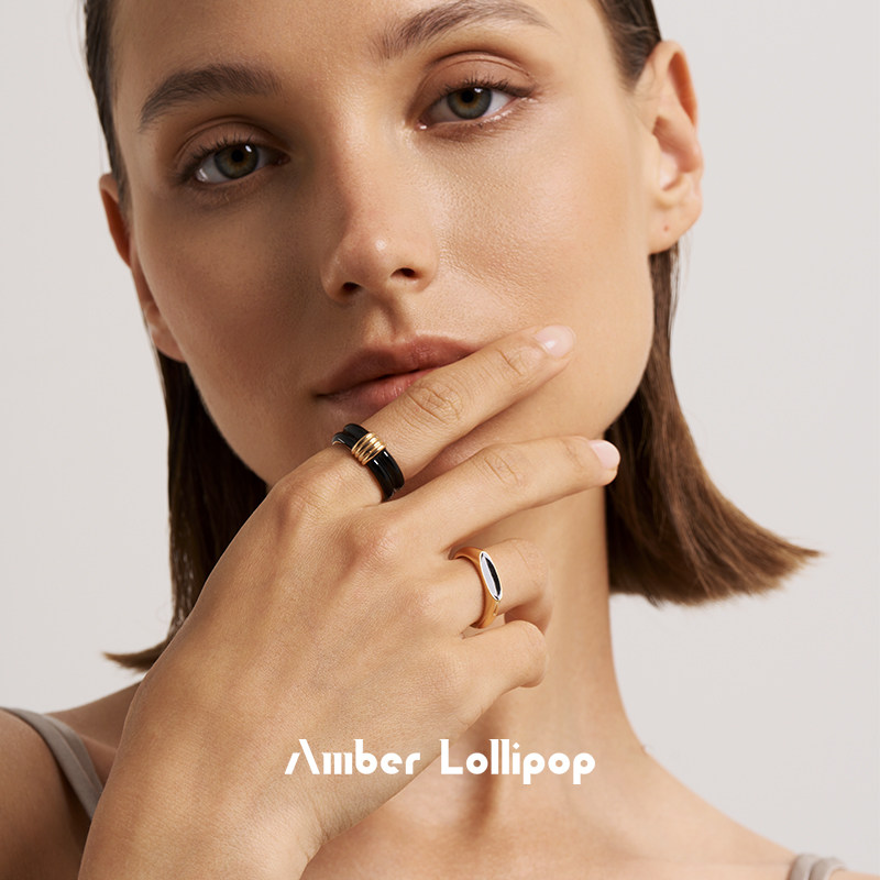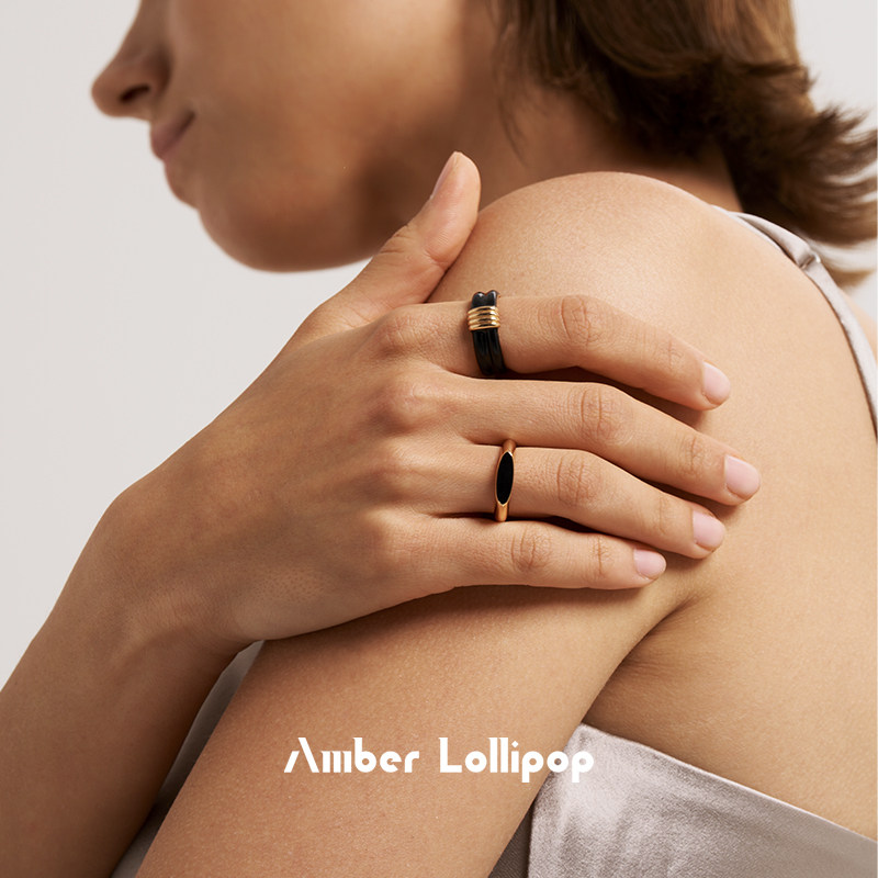 📚 Amber Lollipop黑色戒指轻奢高级感开口戒指小众设计女2025年新款