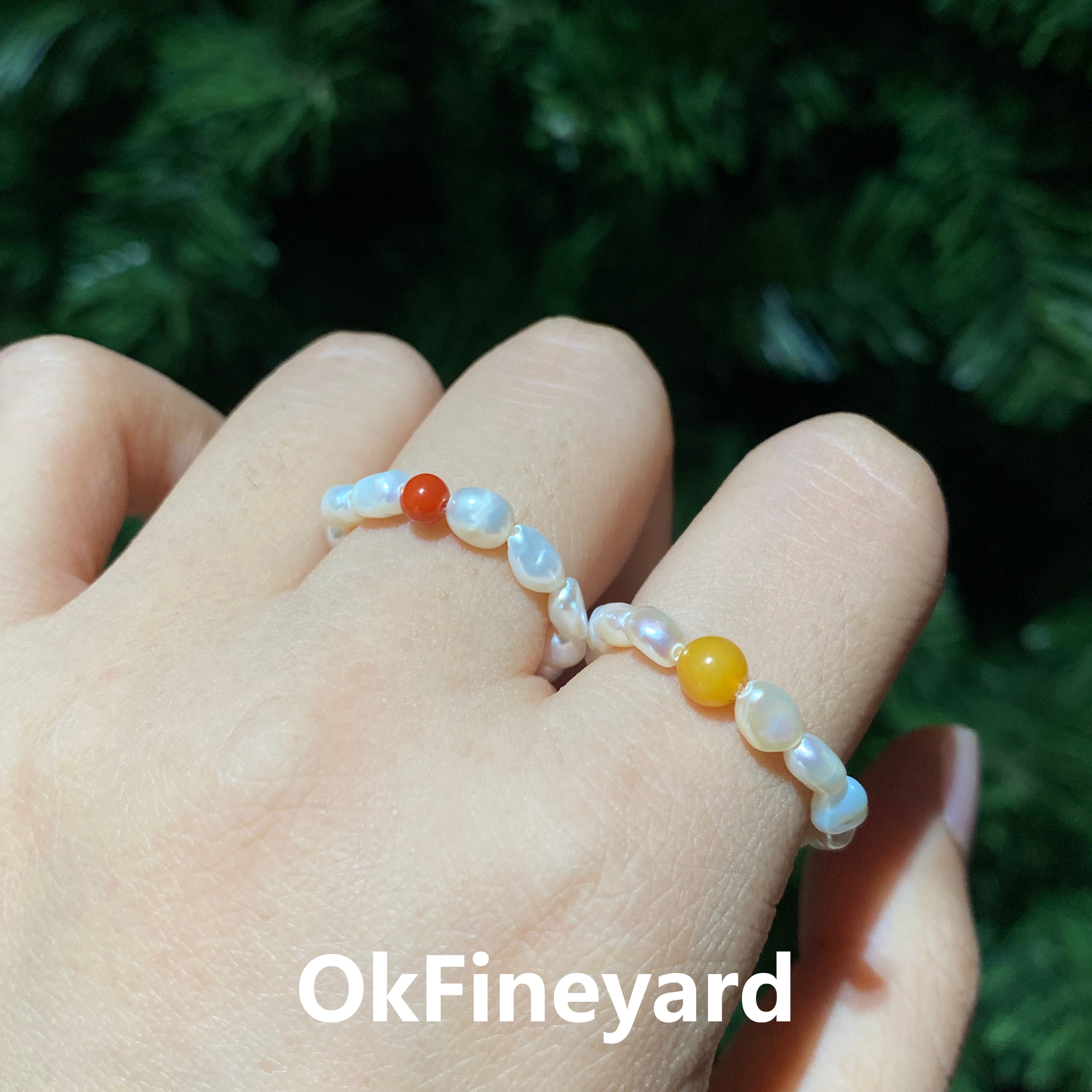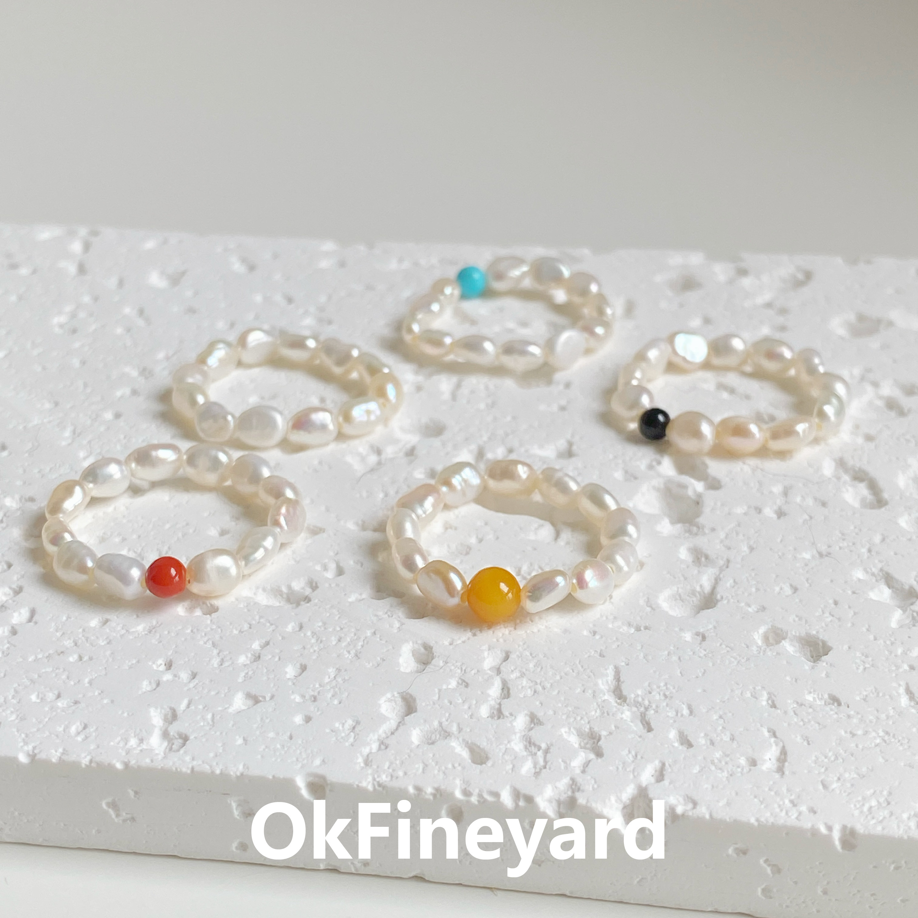 📚 OkFineyard天然巴洛克珍珠戒指女小众设计高级感尾戒串珠弹力指环