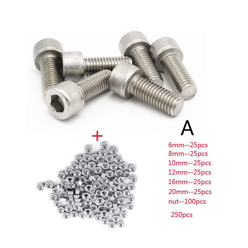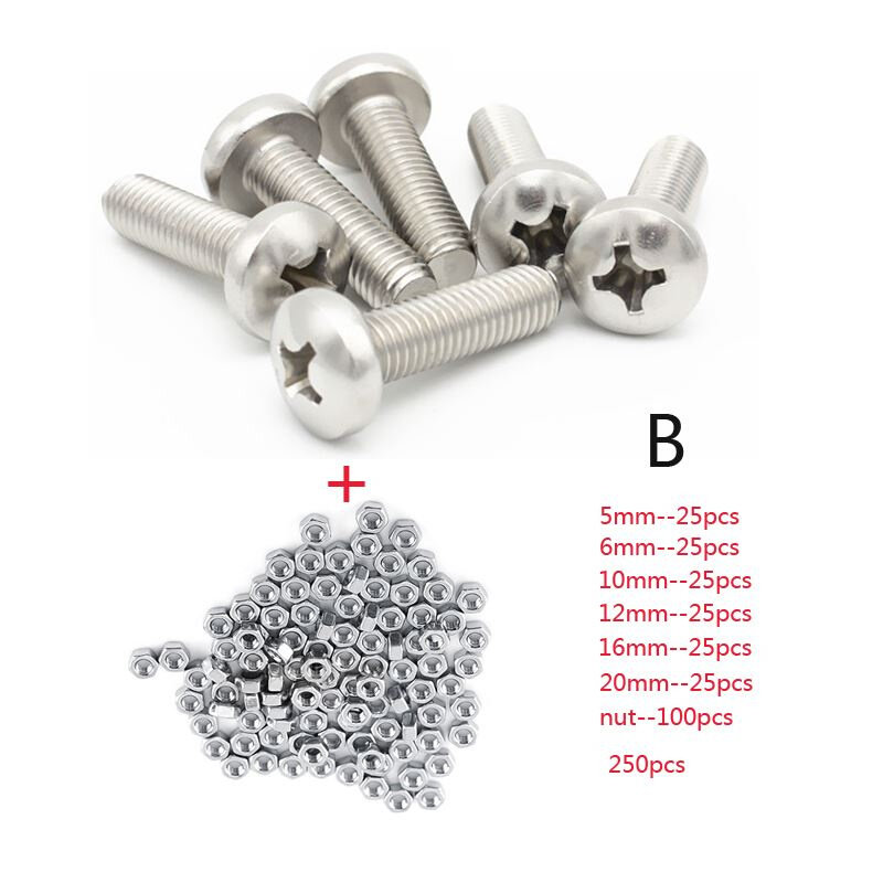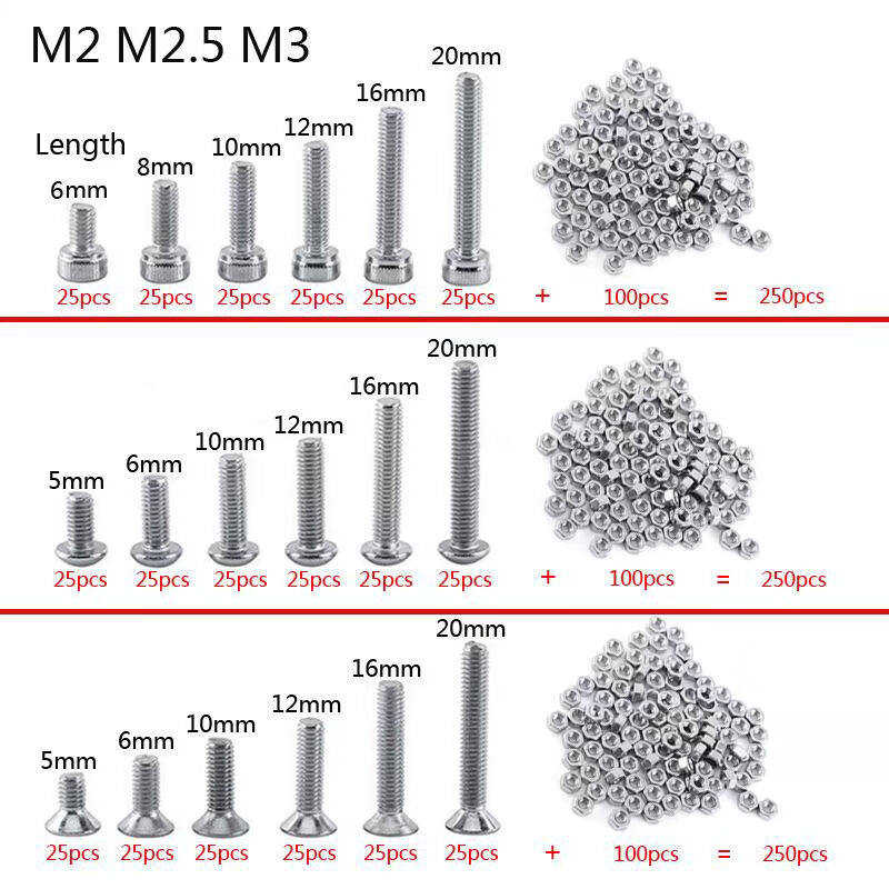 📚 250pc/set A2 ainless eel M3 Cap/Button/Flat Head Screws