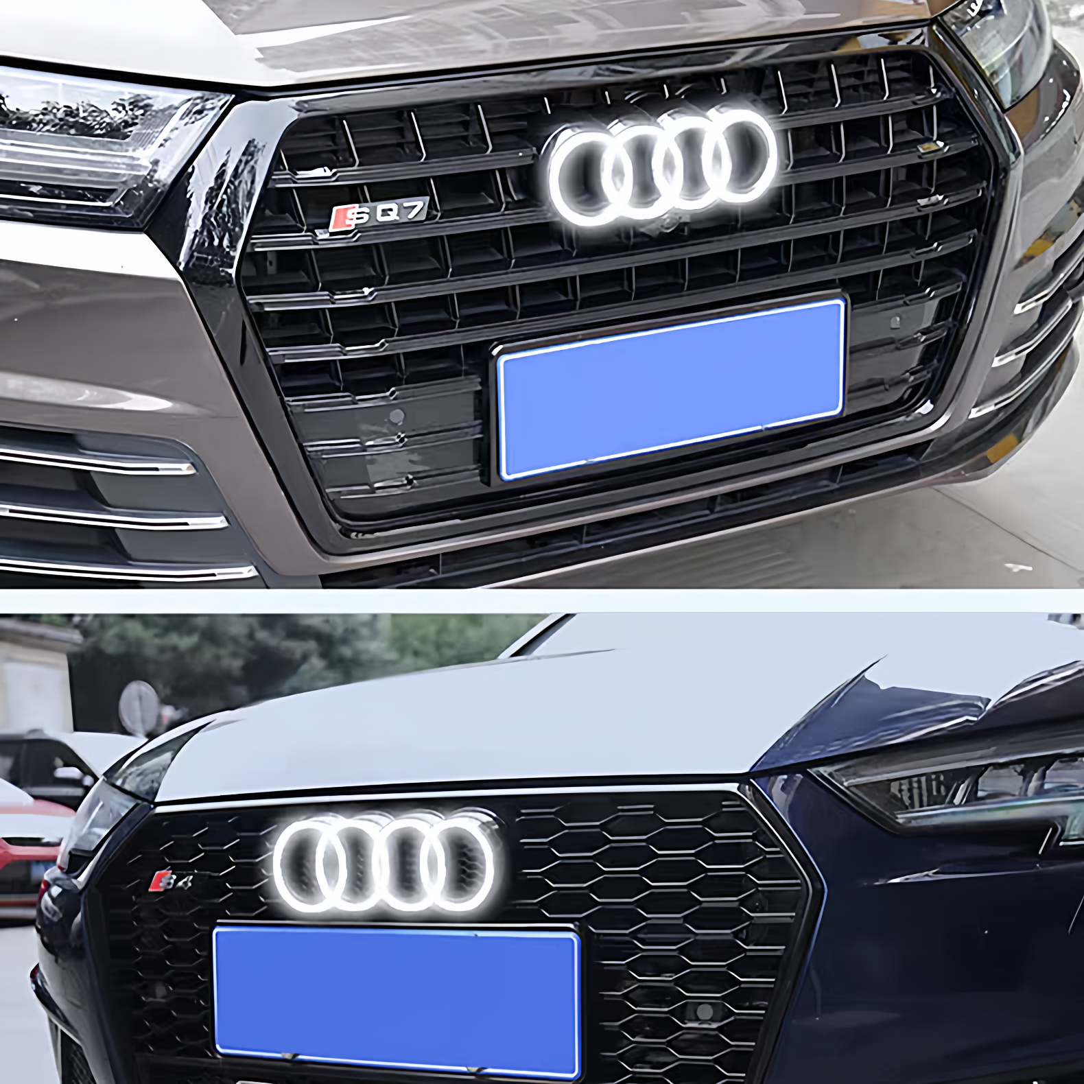 📚 奥迪动态发光车标A1A3A4LA5A6LA7Q3Q5Q7改装中网迎宾车标灯流光灯