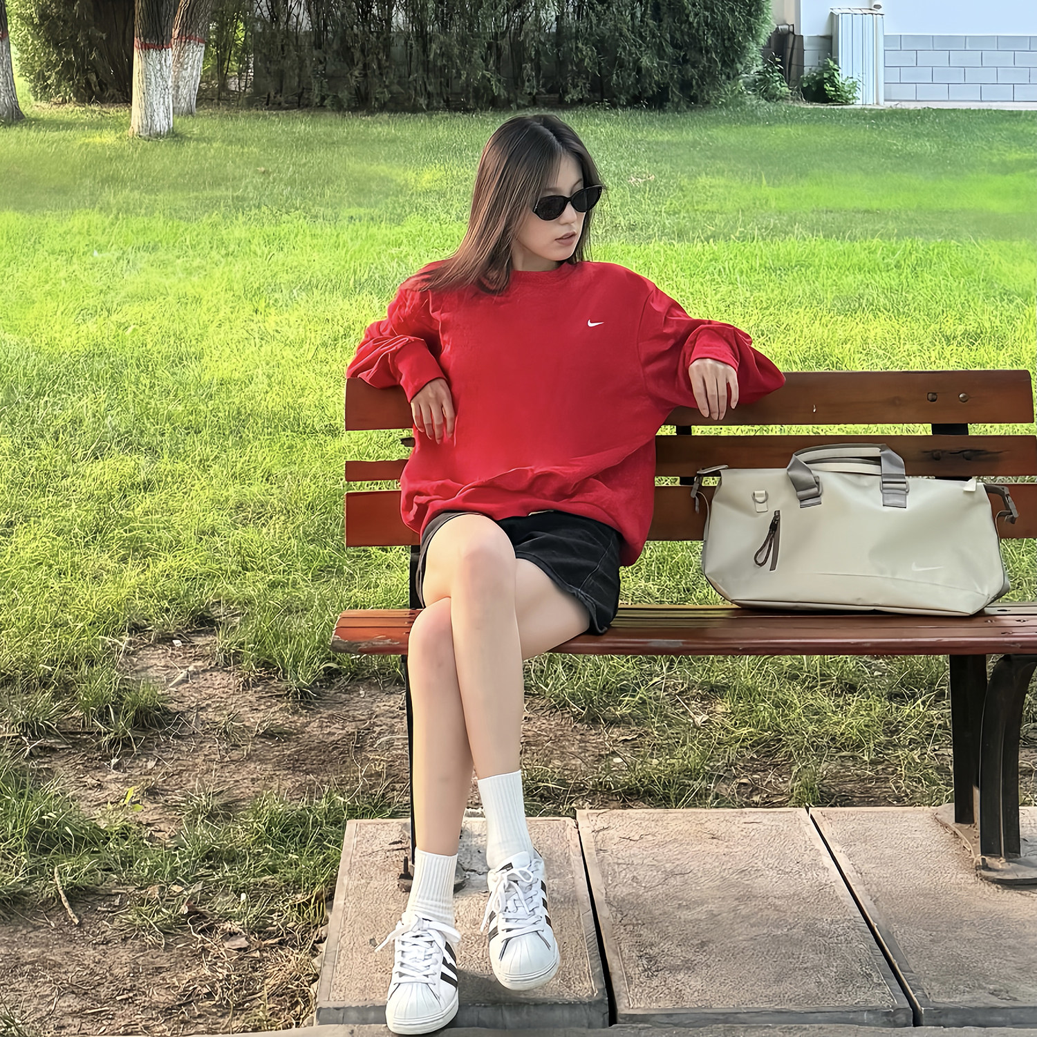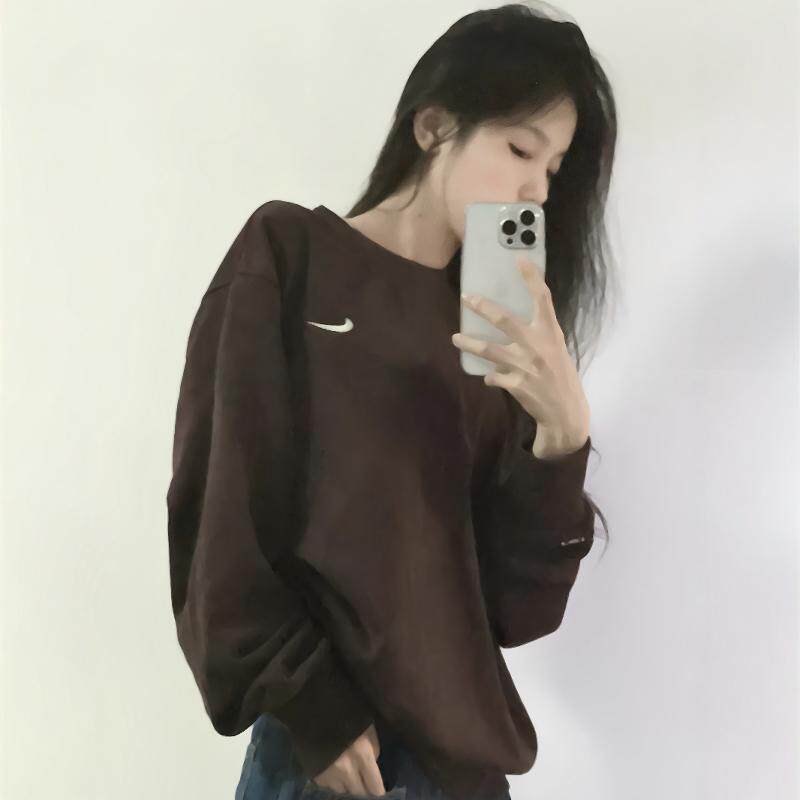📚 NIKE/耐克男女经典刺绣小勾线圈宽松套头运动卫衣 新年红ck6359