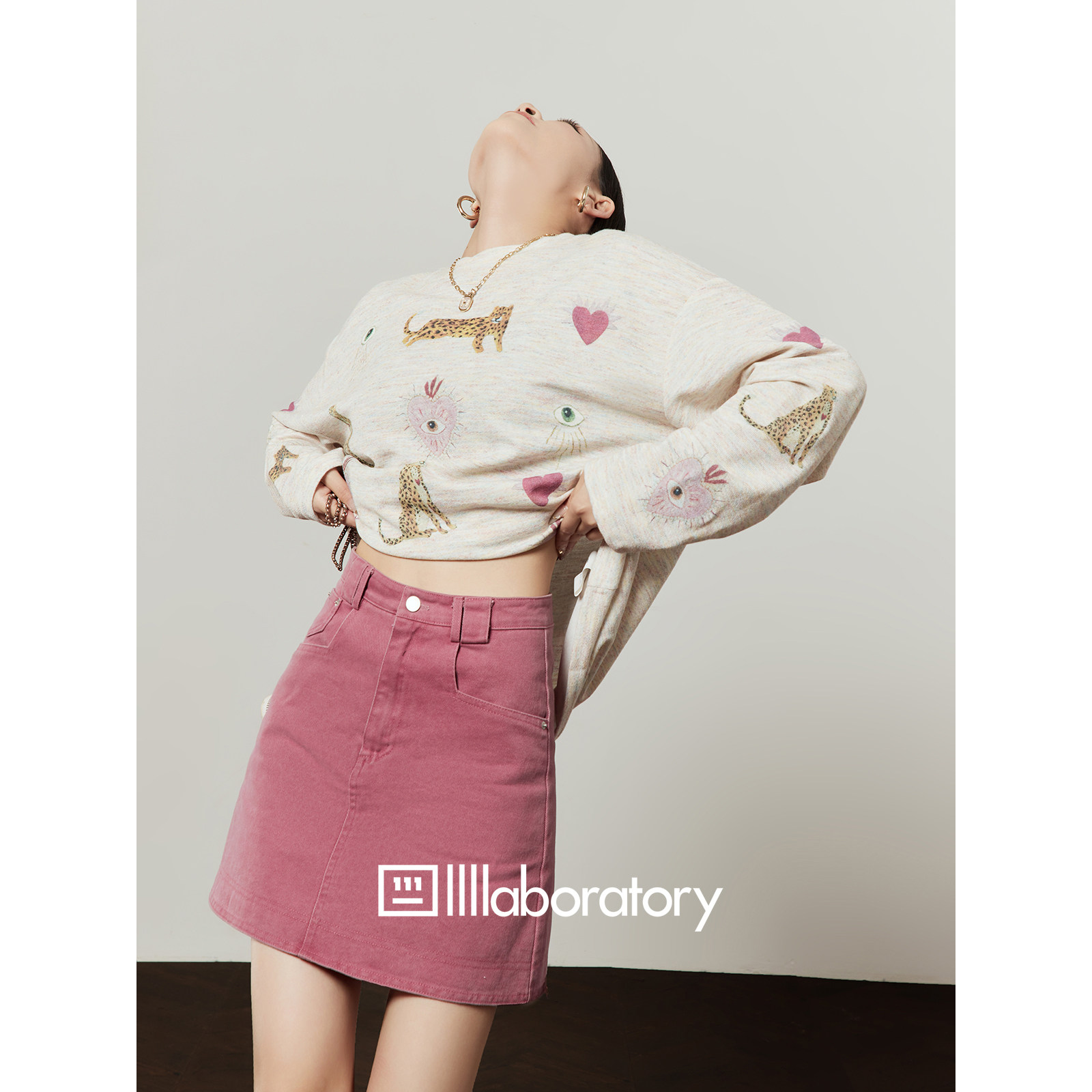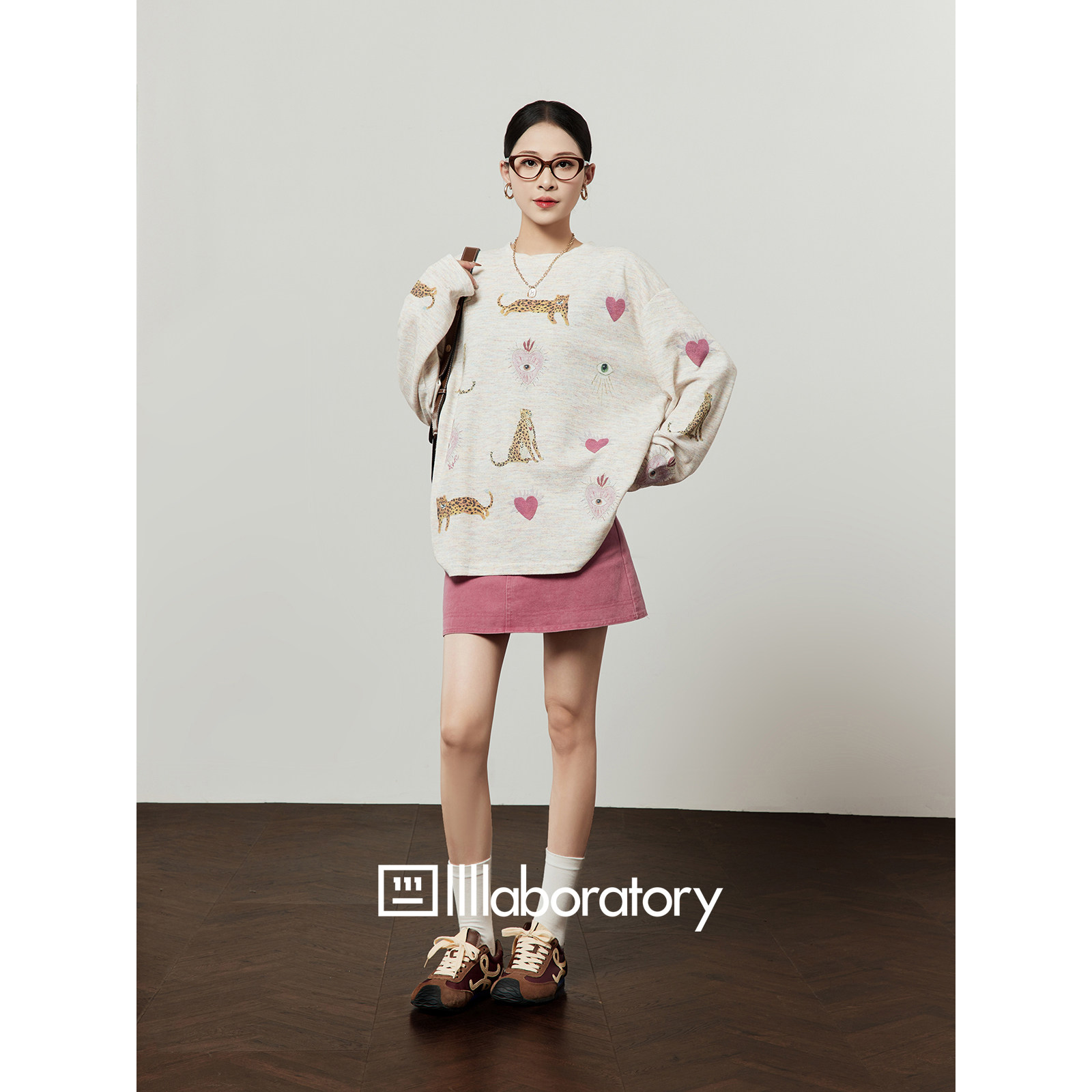 📚 周里物出品「心眼秘语」花纱粉T恤女2026春季新款休闲风印花上衣