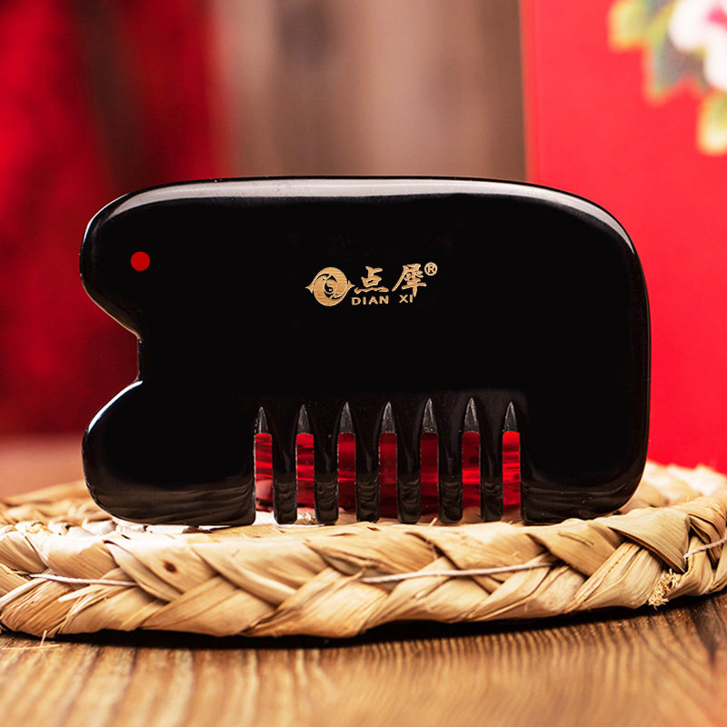📚 天然水牛角刮痧梳子张玉琴经络头部按摩板做头疗刮撒片防两用脱发