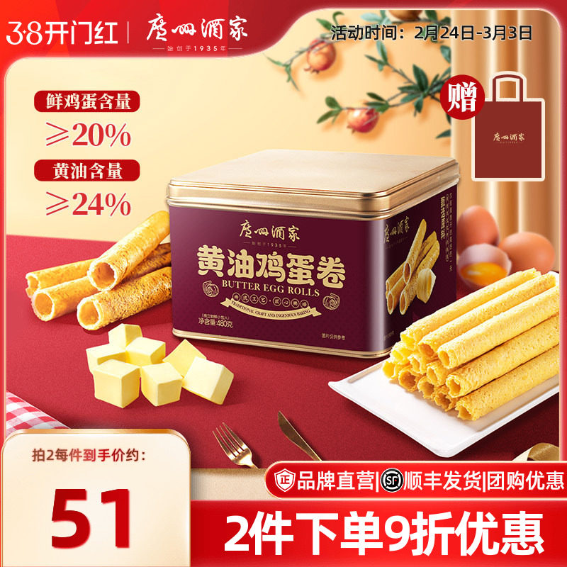 📚 广州酒家黄油鸡蛋卷480g礼盒零食点心酥饼干年货伴手礼手信特产