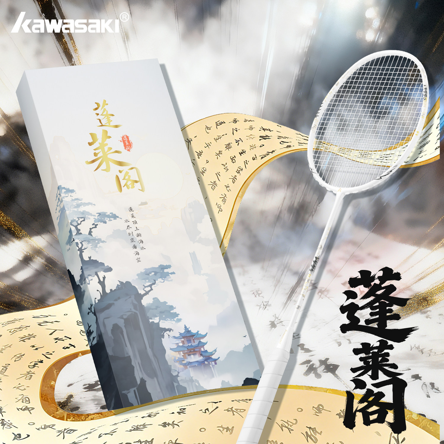 📚 川崎羽毛球拍蓬莱阁5U全碳素超轻进攻国风系列礼盒专业训练比赛拍
