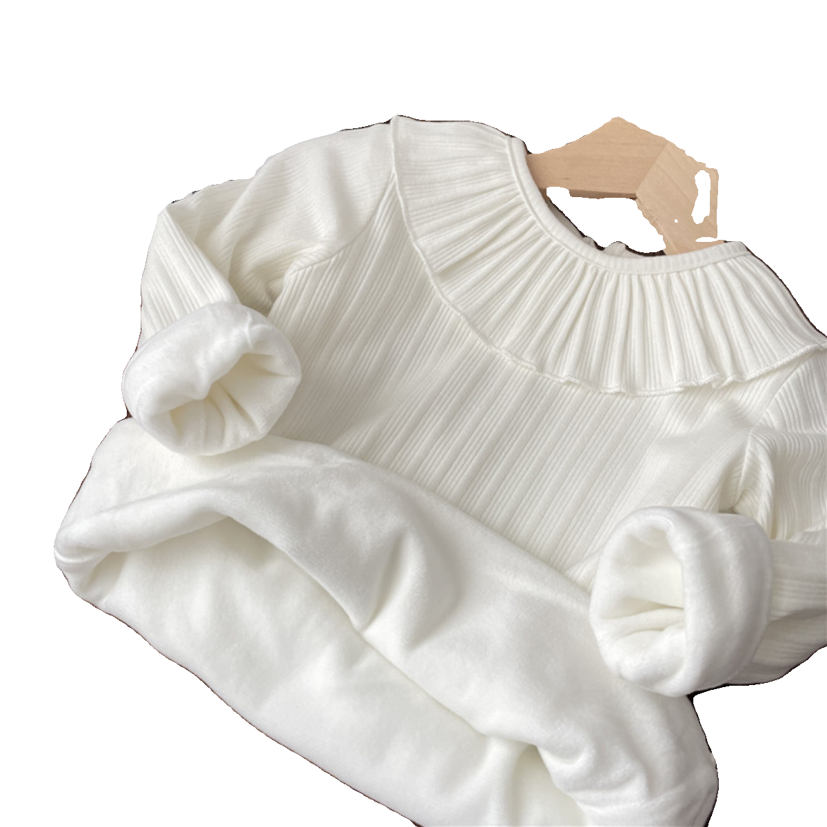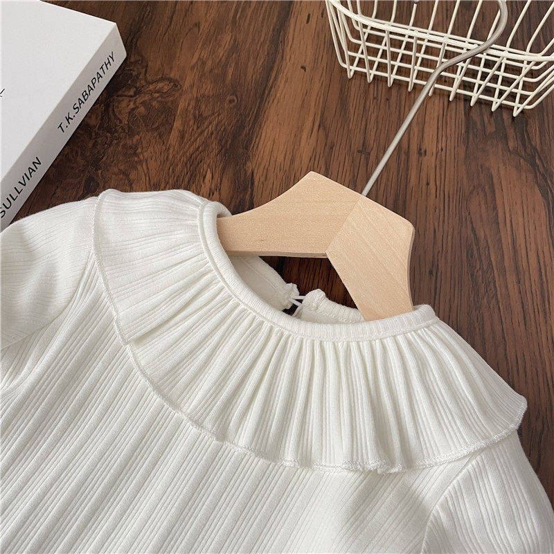 📚 纯棉公主小童秋冬女童加绒打底衫荷叶领长袖t恤婴儿内搭宝宝1上衣