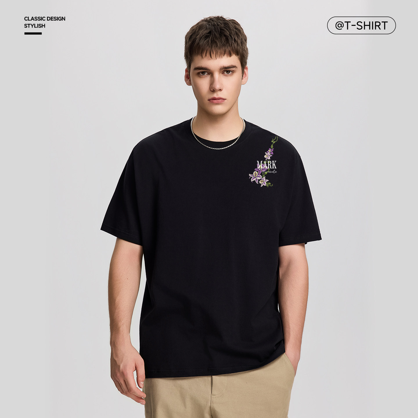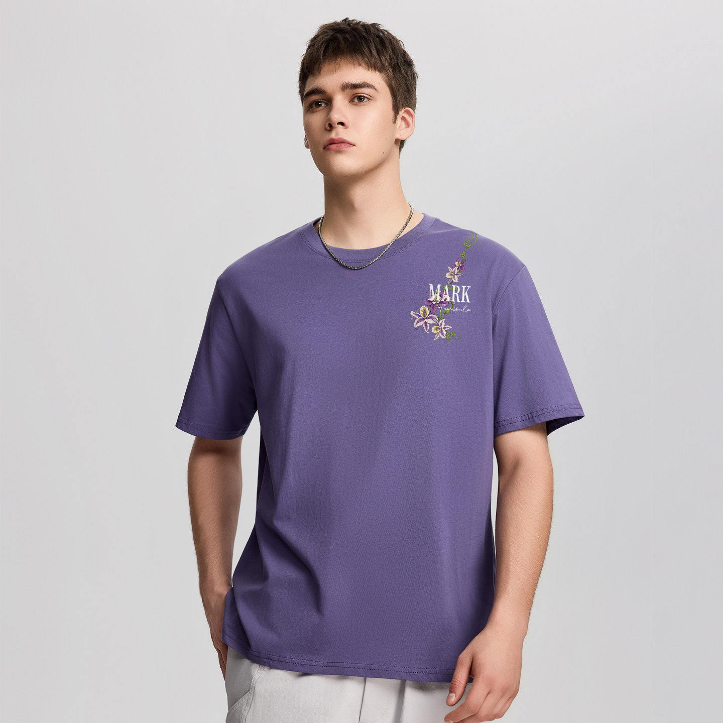 📚 马克华菲重磅纯棉t恤男潮流浅紫花卉印花设计感上衣2026新款短袖