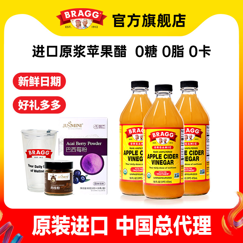 📚 美国Bragg苹果醋进口博饶谷原浆浓缩0糖0脂健身浓缩饮料473ml4瓶