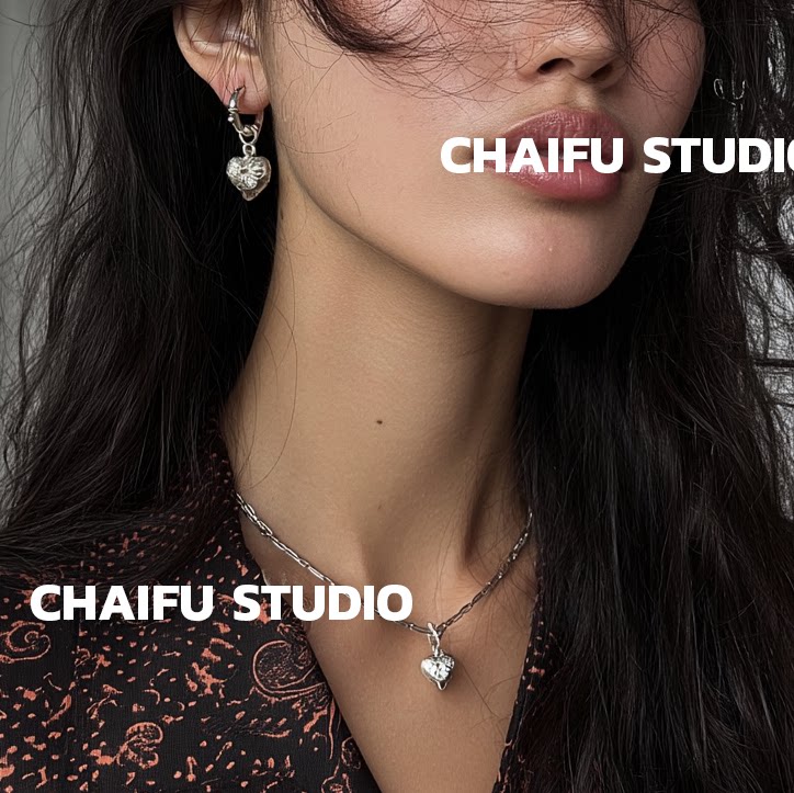 📚 柴夫工作室/R125 美式复古做旧镂空锆石镶嵌爱心设计感耳环耳扣