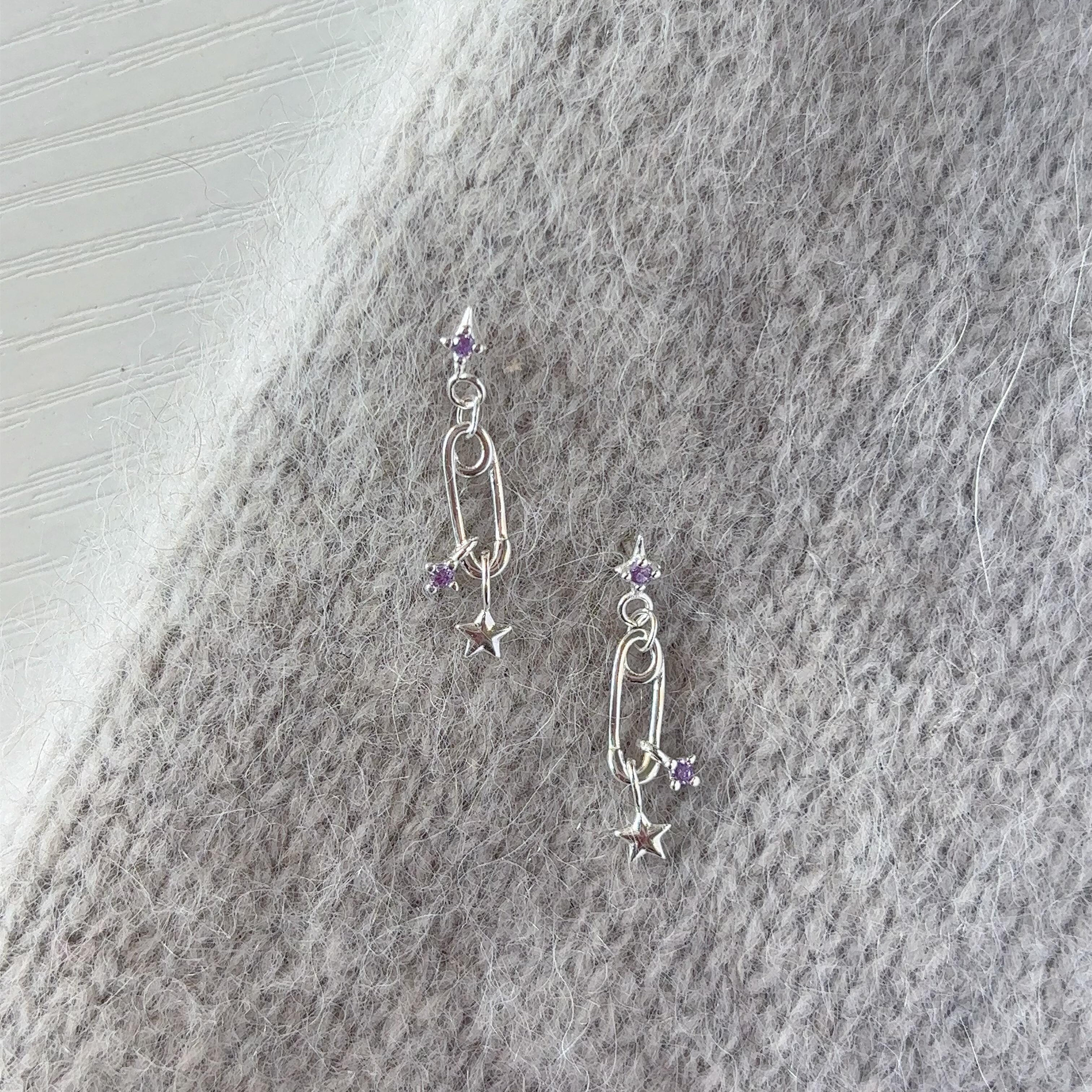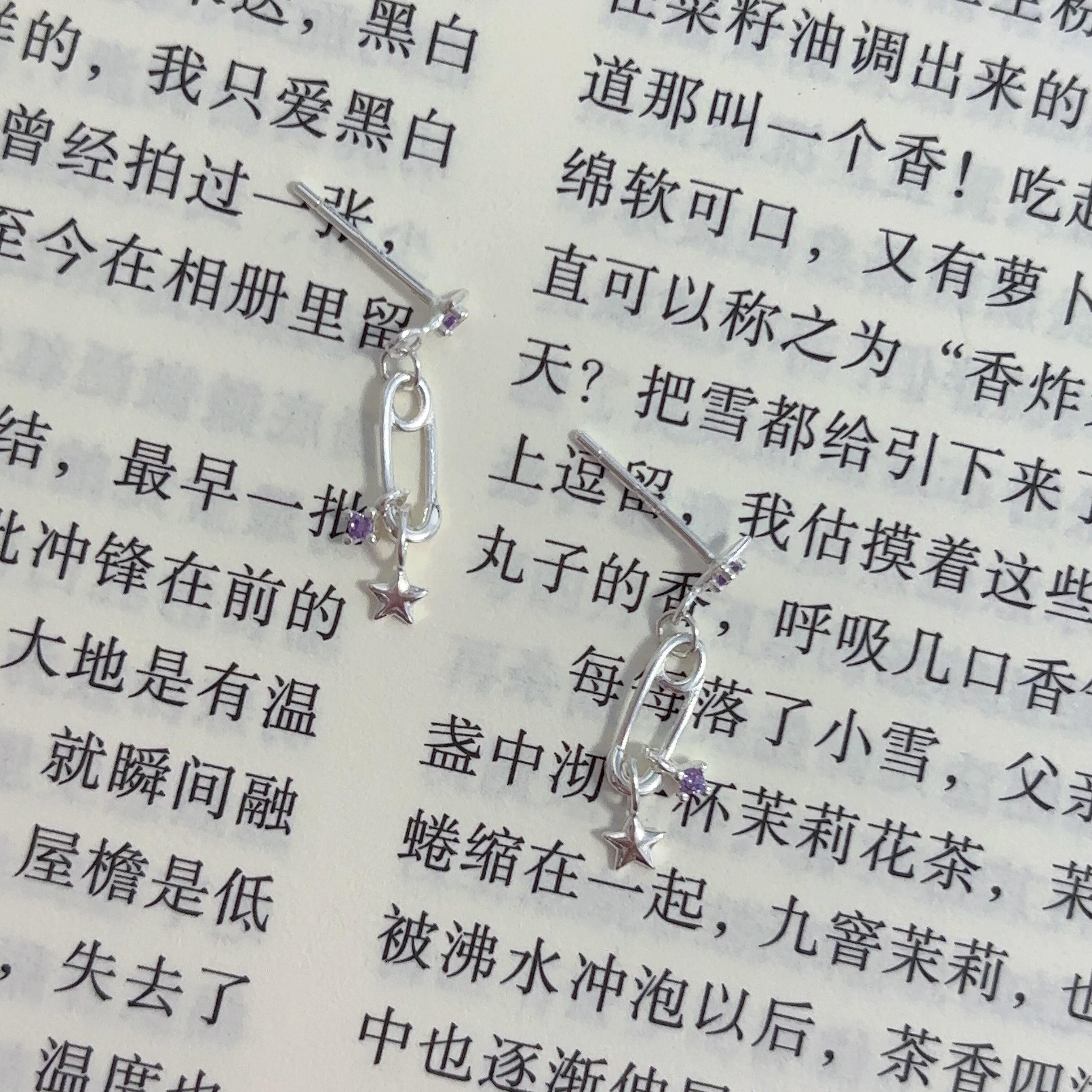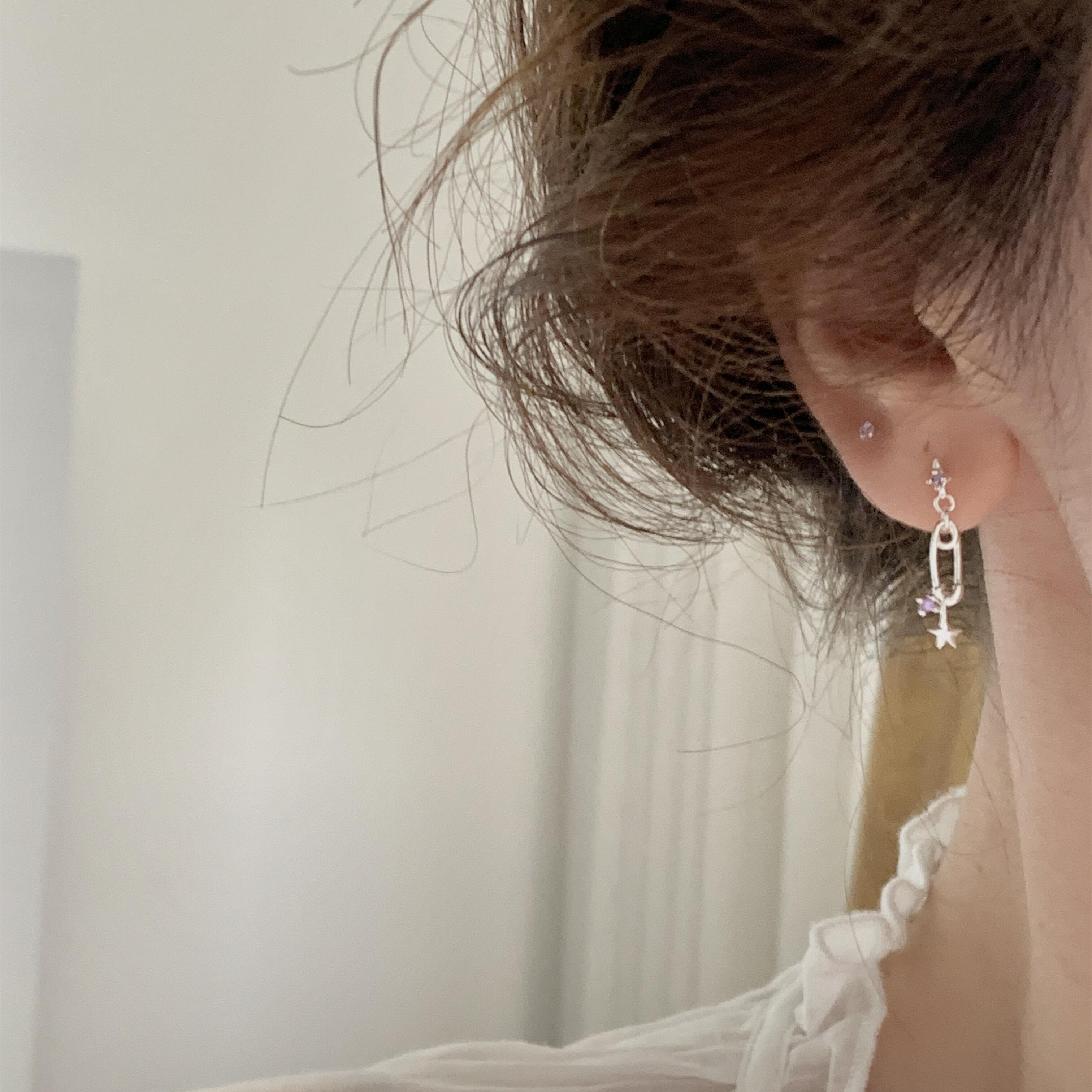 📚 回形针紫色星星耳坠耳钉女S925银甜酷锆石耳骨钉2025新款爆款耳环