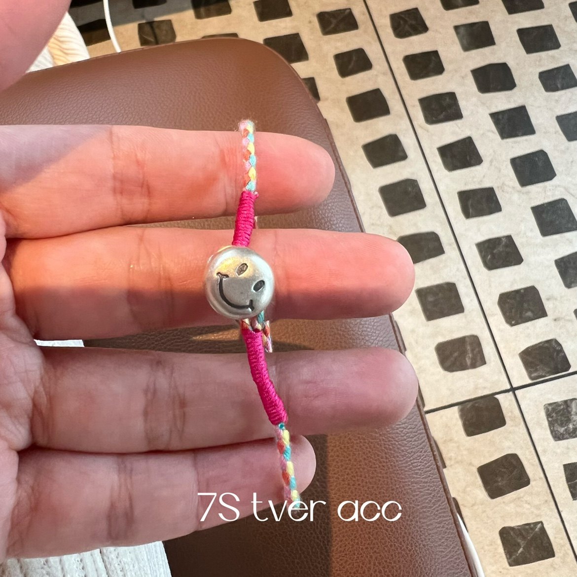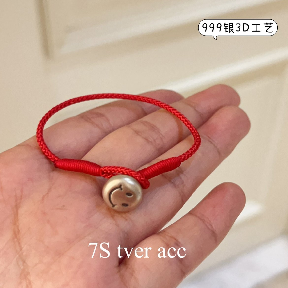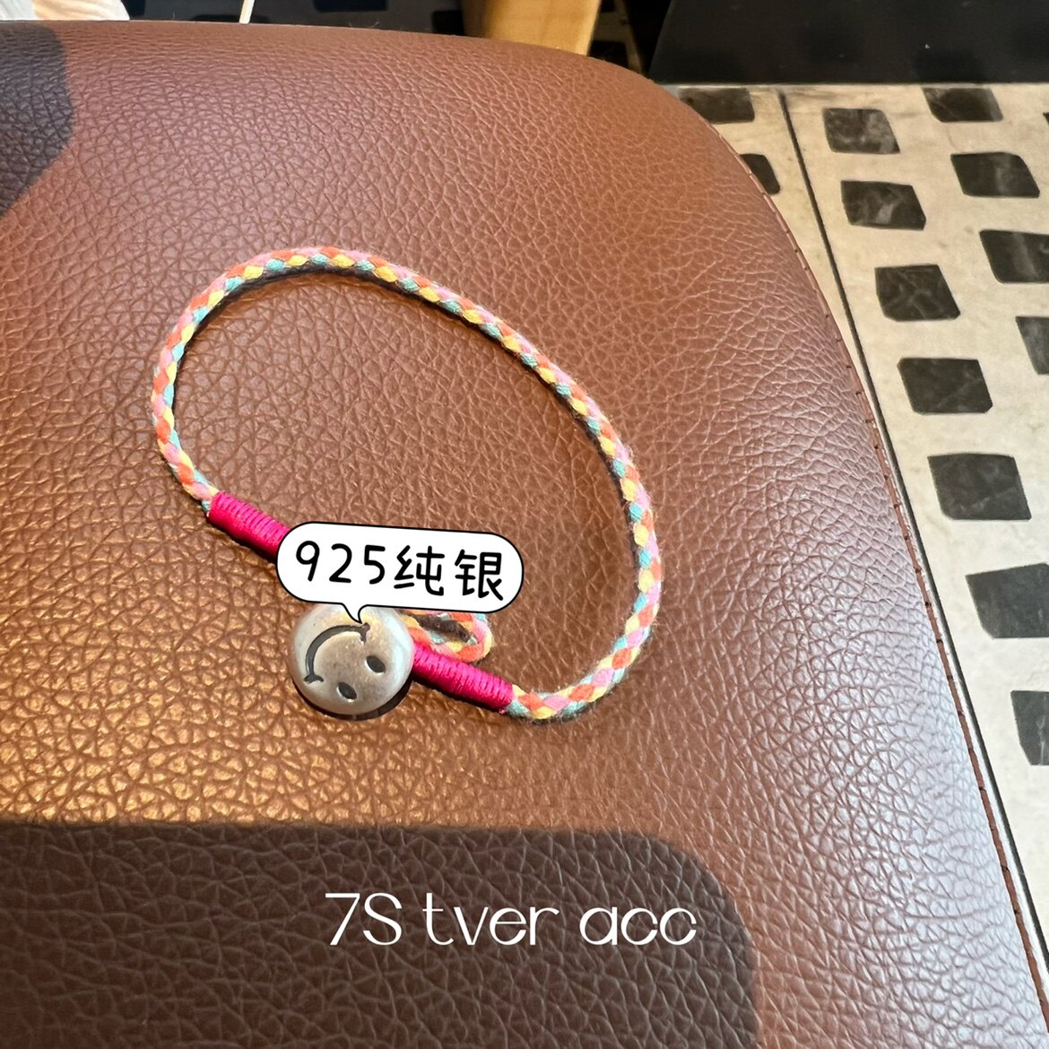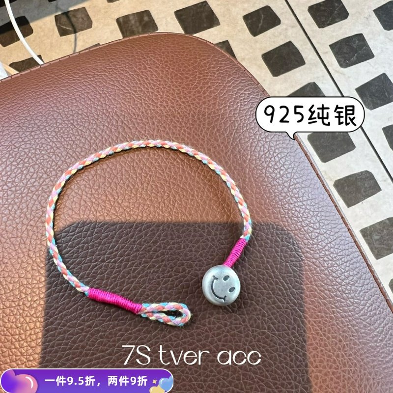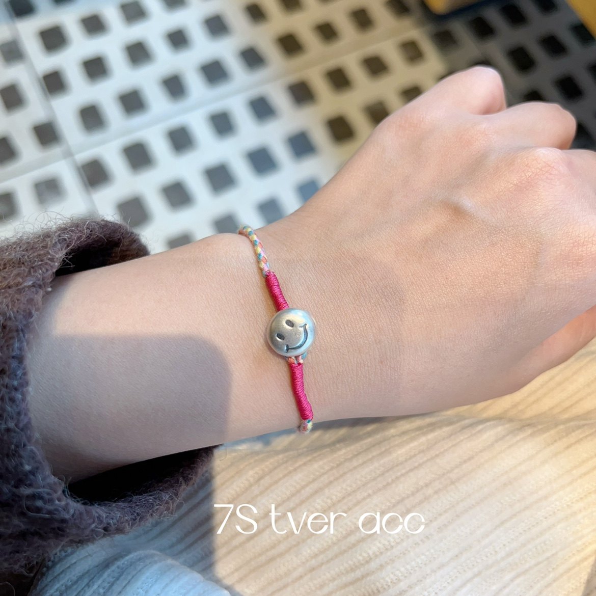 📚 【现】tver Acc韩国复古做旧笑脸999纯银手链玫红五彩手工手环