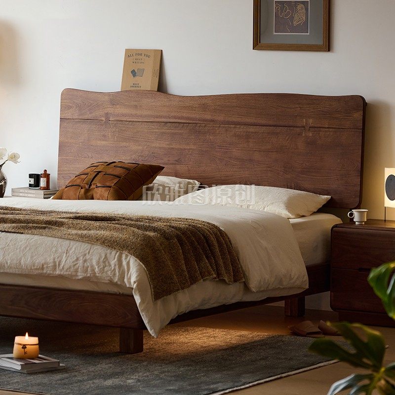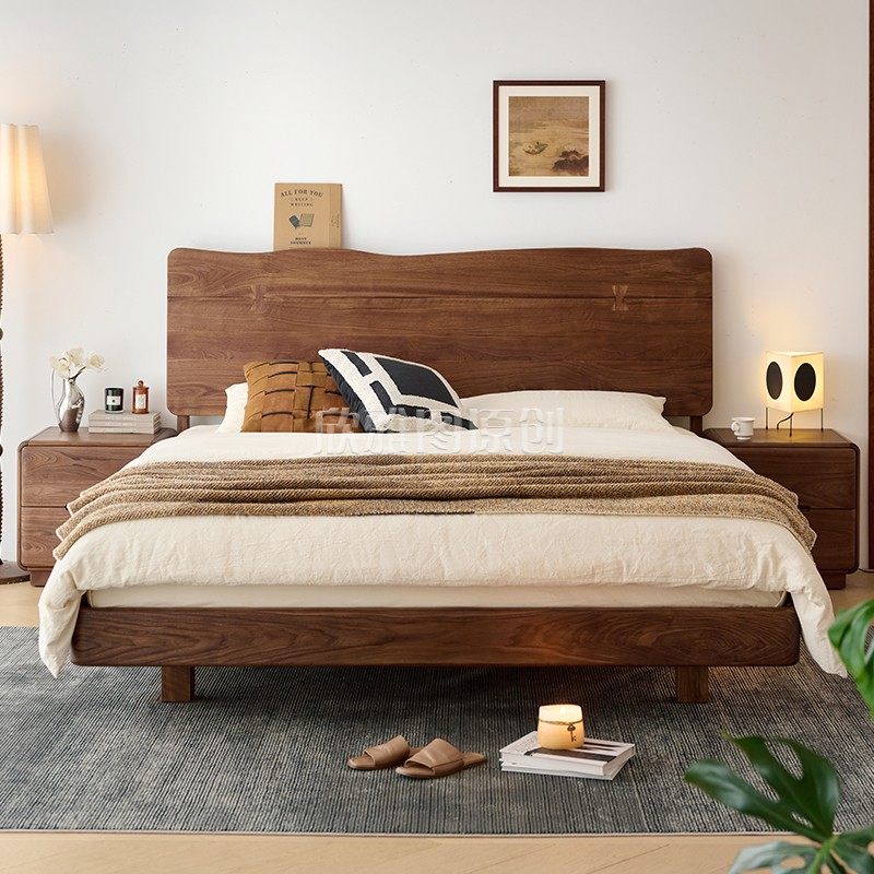 📚 北美黑胡桃木床高端全实木床1米8双人床家用主卧大床北欧原木家具