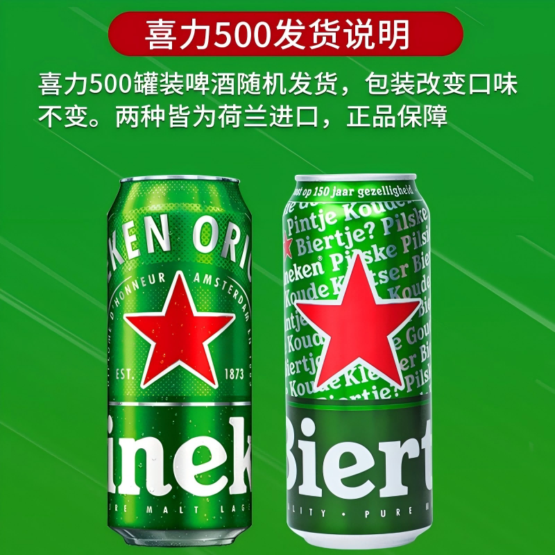 📚 荷兰进口喜力Heineken啤酒黄啤精酿500ml*24瓶罐装箱整箱原装正品