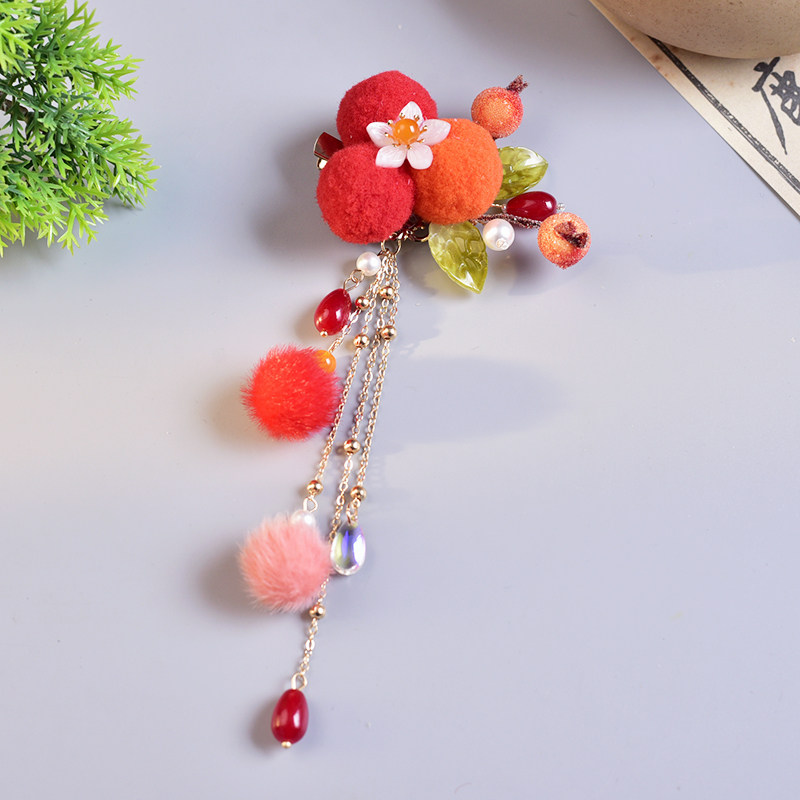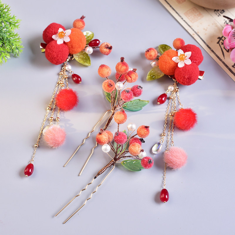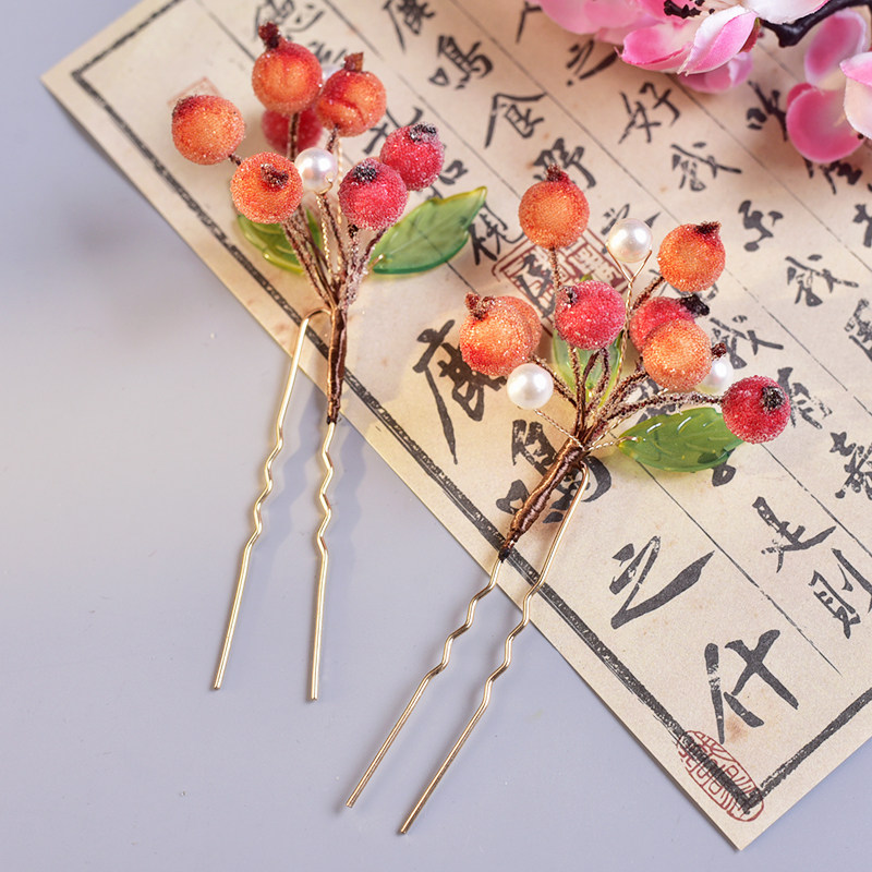 📚 汉服原创小浆果发夹花朵簪子影楼拍照发饰仿绒花古风头饰