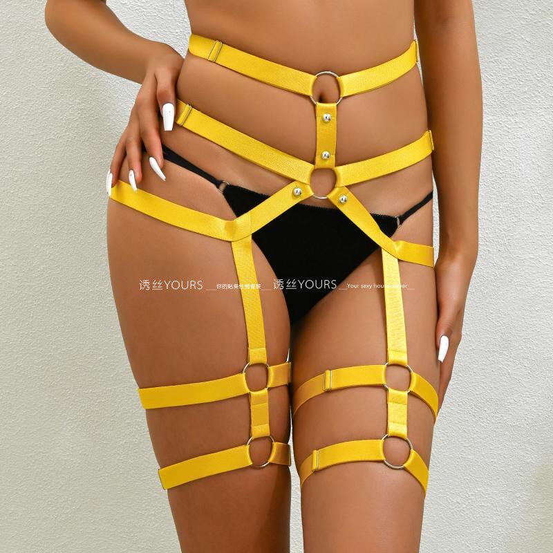 📚 性感铆钉铁环情趣束腰绳带束臀裤连腿环可调节绳衣热辣跳舞直播女