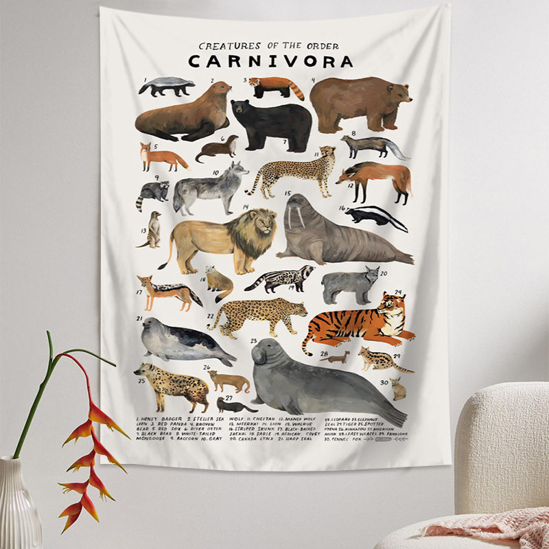 📚 ins美国设计kelzuki动物背景布卧室宿舍改造艺术墙布北欧装饰挂毯