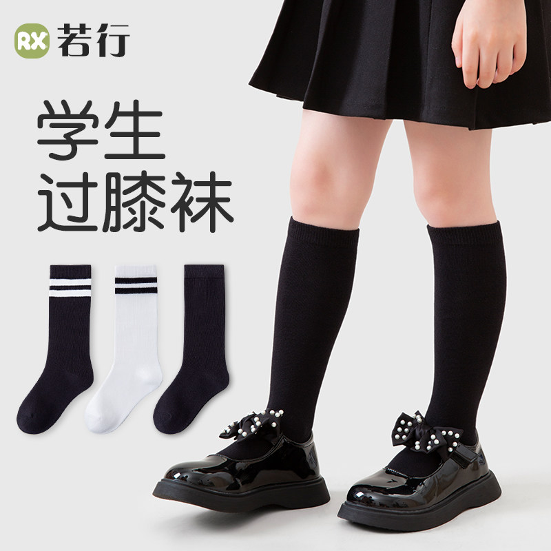 📚 儿童学生长腿袜纯棉纱线春夏女童男童黑色高筒袜白色小腿袜长袜子