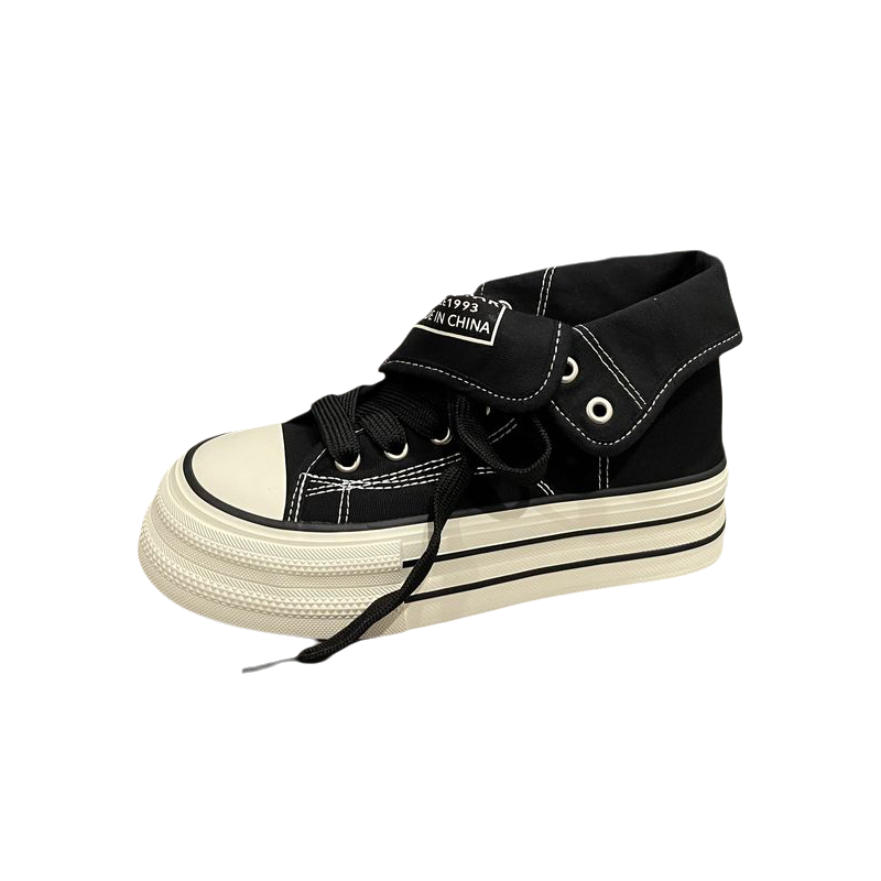 📚 七七主人家 高帮帆布鞋女黑色鞋子女2025秋季新款学生板鞋女百搭