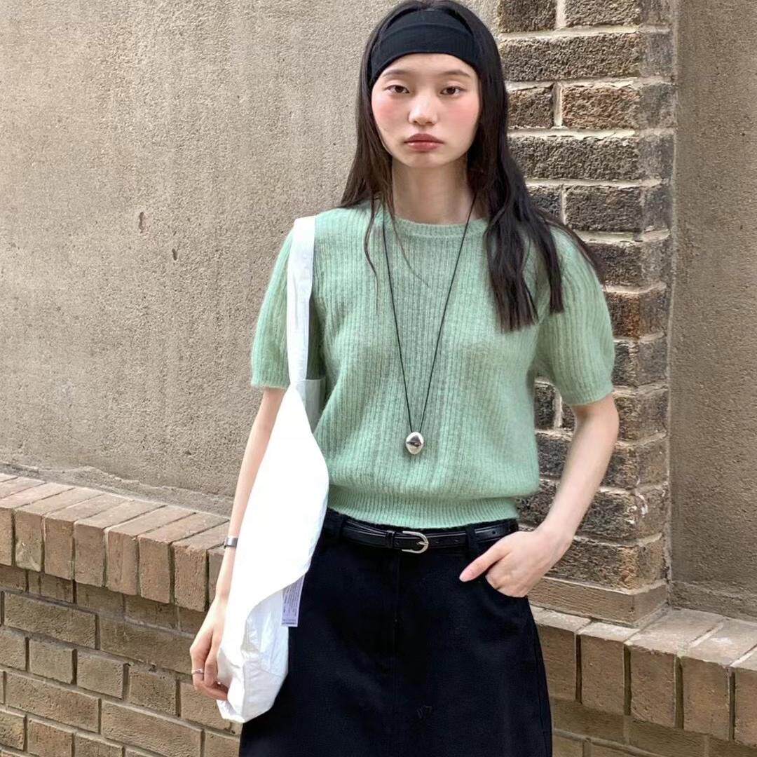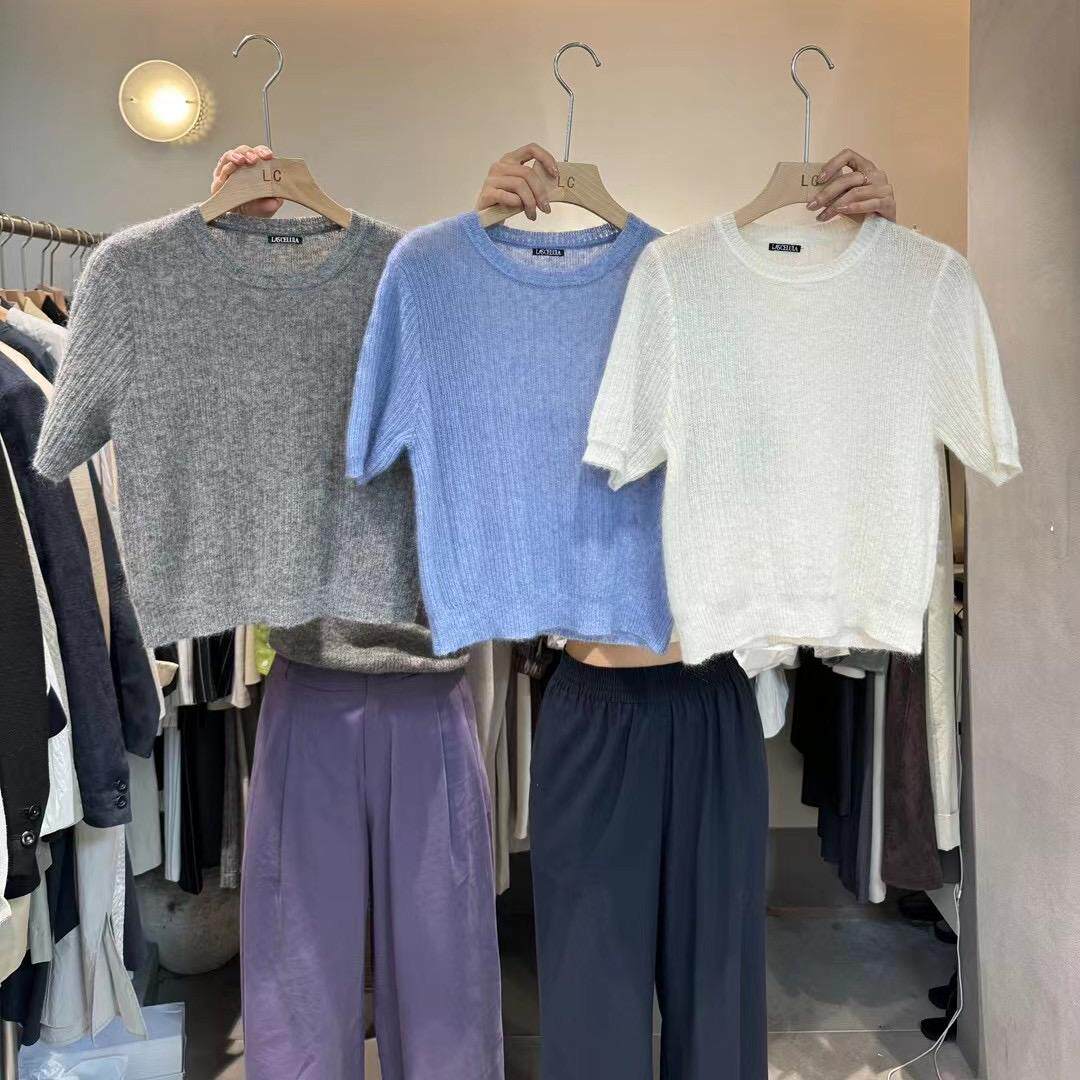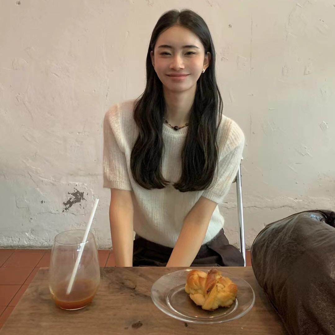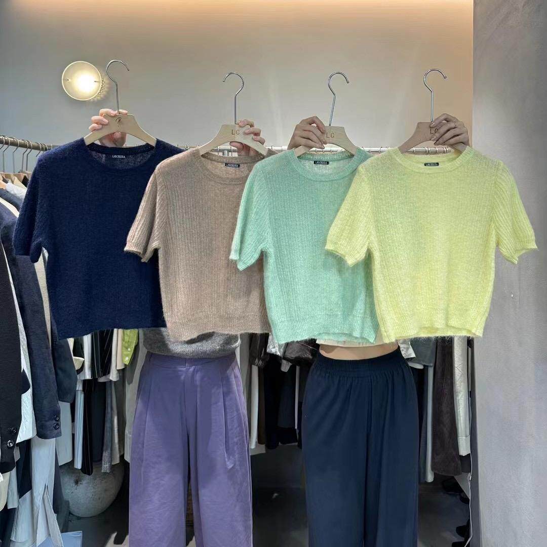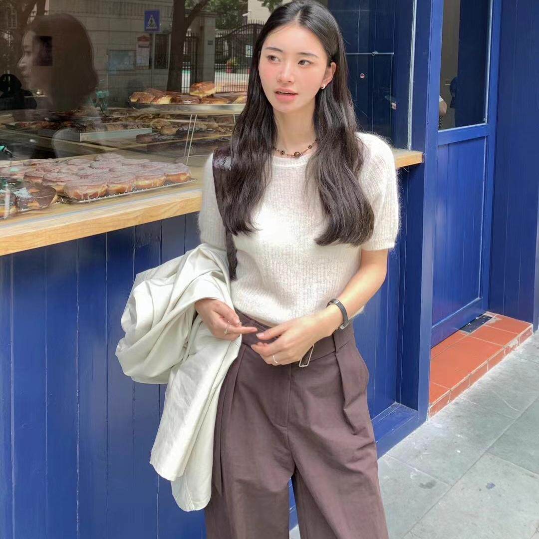 📚 LAS CELULA十三行2024早秋新款圆领休闲短袖针织衫女宽松短款上衣
