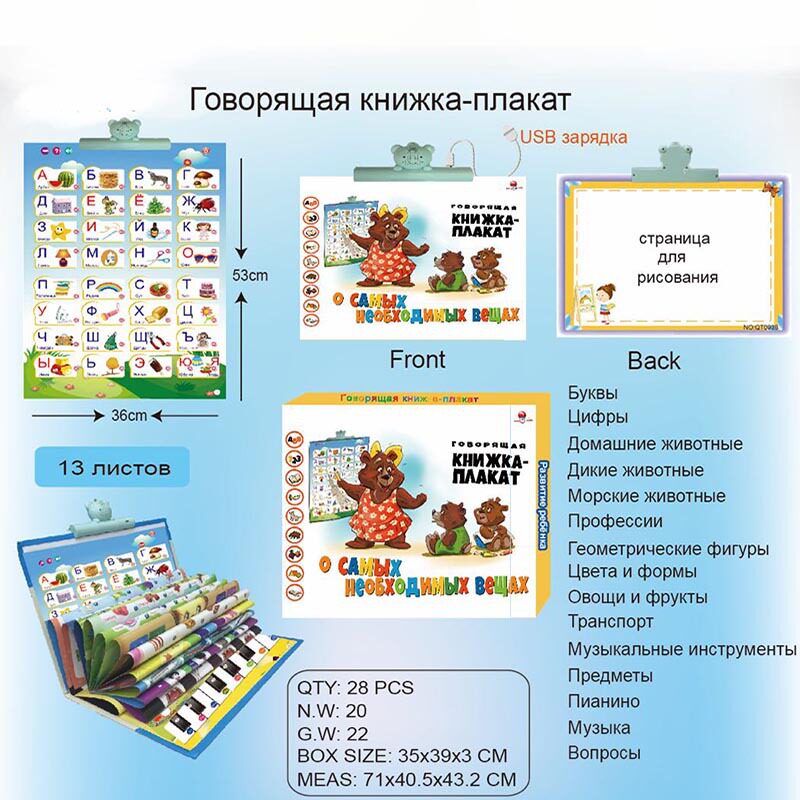 📚 俄罗斯语有声挂图早教启蒙玩具俄语学习电子书俄文点读挂本充电版