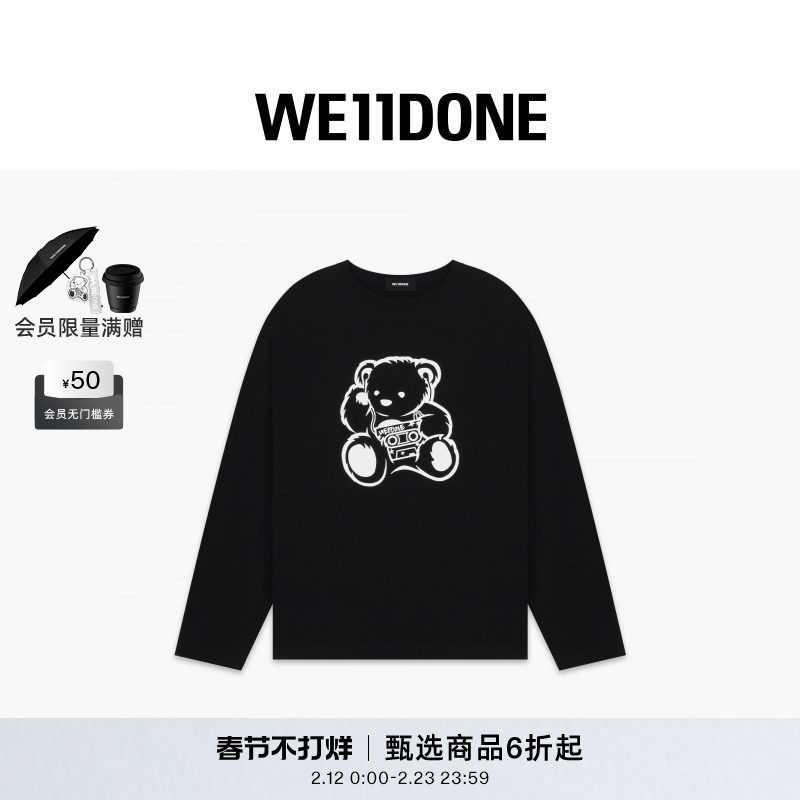 📚 【线上独家】WE11DONE25新品男女同款小熊印花长袖T恤街头感潮流