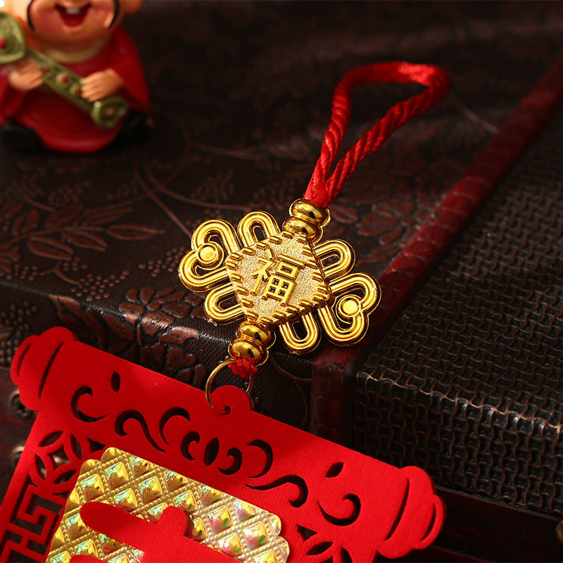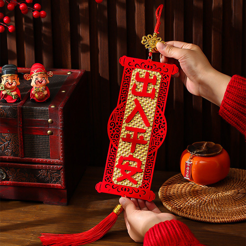 📚 四字挥春小对联挂件饰2026马年新年双面立体绒布抬头见喜出门见财