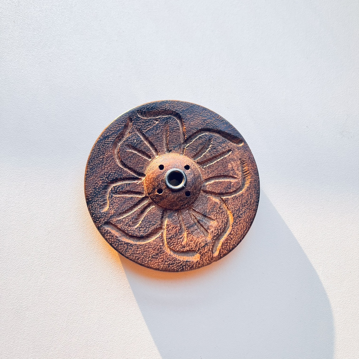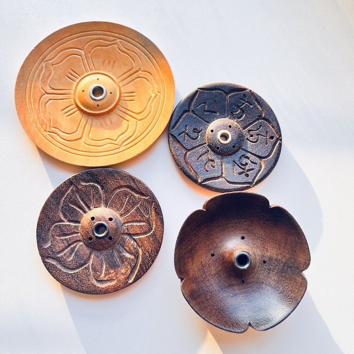 📚 尼泊尔进口木制香插香盘圆形纯手工刻制线香绳香塔香可用供佛室内
