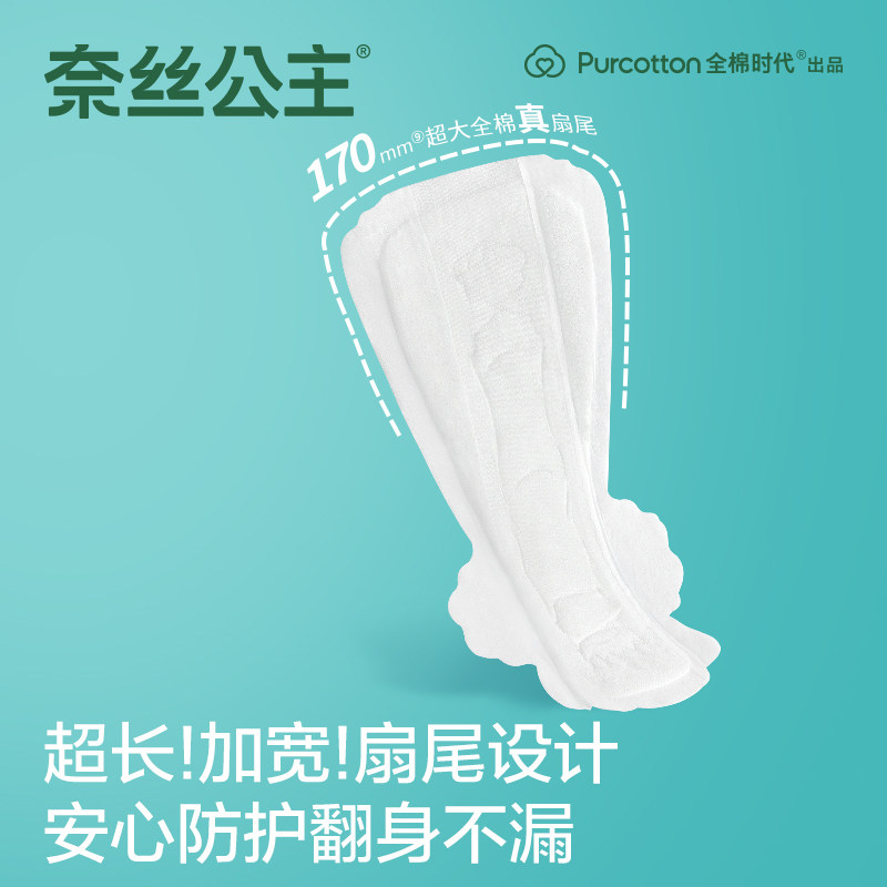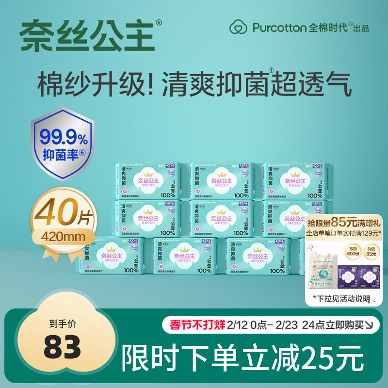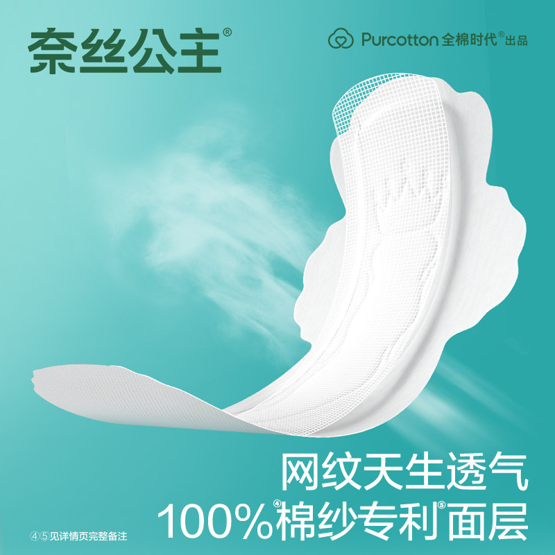 📚 全棉时代奈丝公主消毒级棉纱抑菌加长夜用卫生巾420mm10包