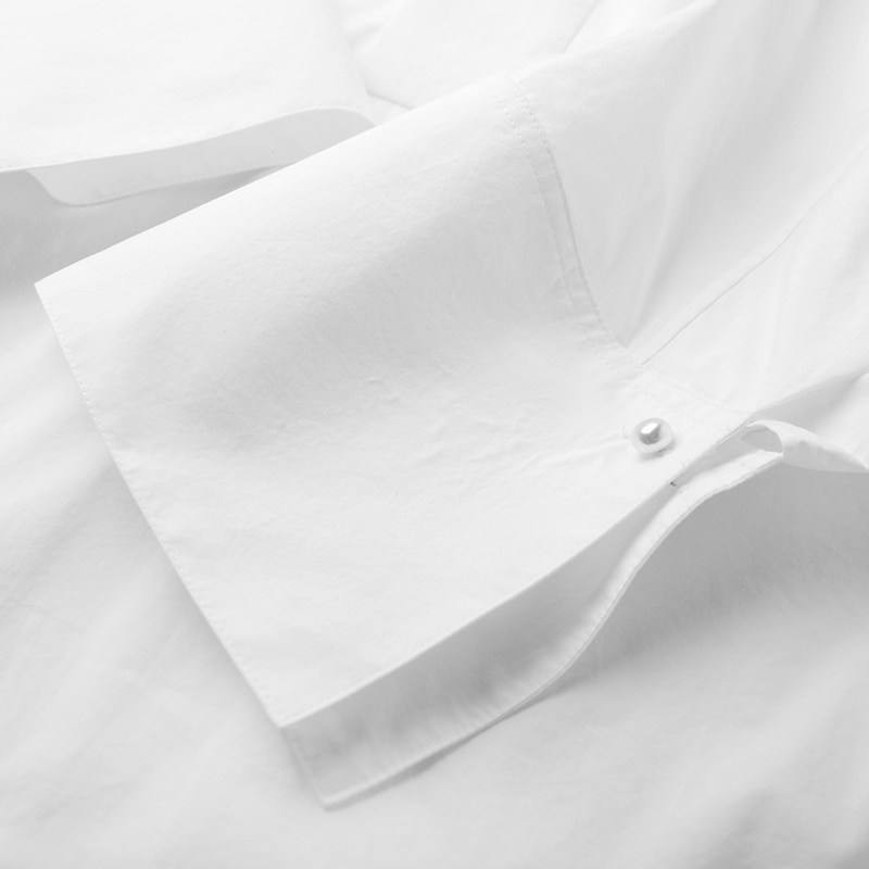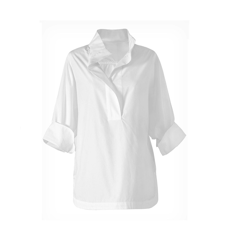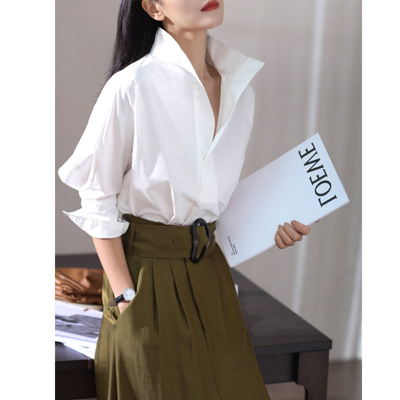 📚 立领白色衬衫女士设计感法式小众休闲百搭V领宽松全棉上衣中袖